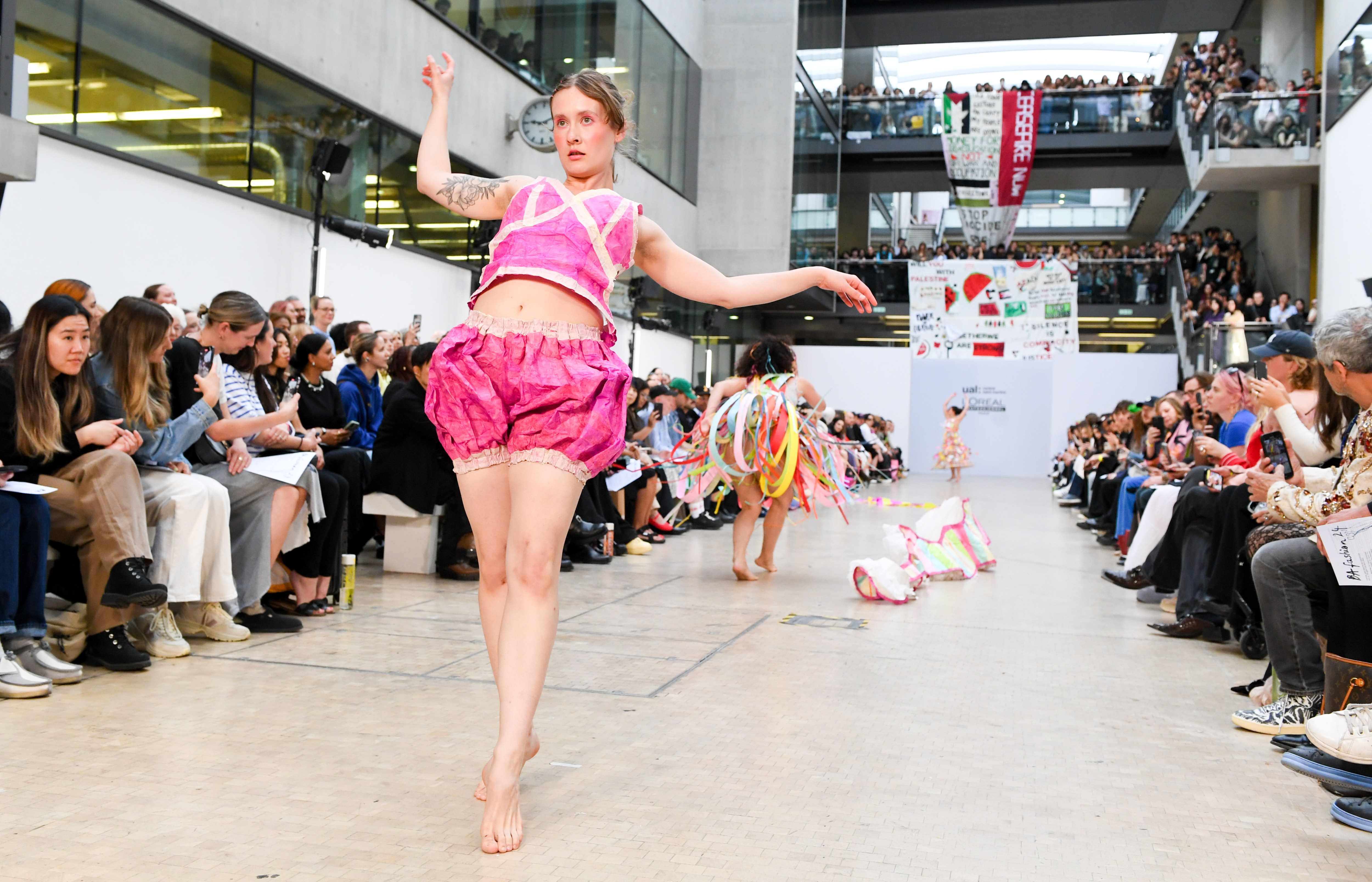 A model walks the runway at the Central Saint Martins BA Fashion Show 2024 in King's Cross on May 29, 2024 in London, England. (Photo by Dave Benett/Getty Images)