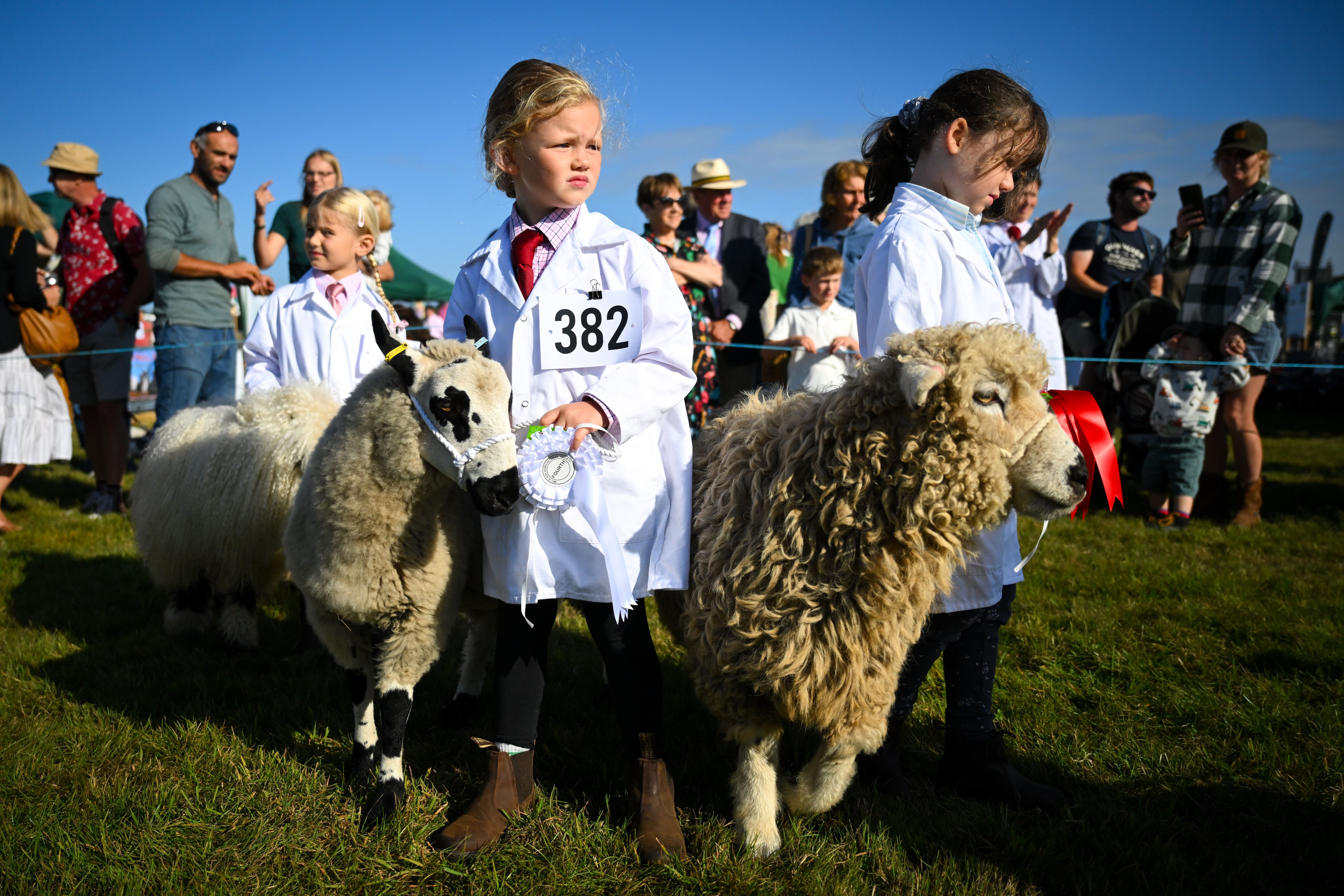 Young handlers and their sheep are judged at the Melplash Agricultural Society Show, on August 21, 2025 in West Bay, Dorset. The Melplash Agricultural Society Show, held in West Dorset, is a prominent agricultural exhibition in the South West region. Besides providing a platform for trade, visitors can also witness animal judging and gain valuable insights into food production and farming practices. (Photo by Finnbarr Webster/Getty Images)