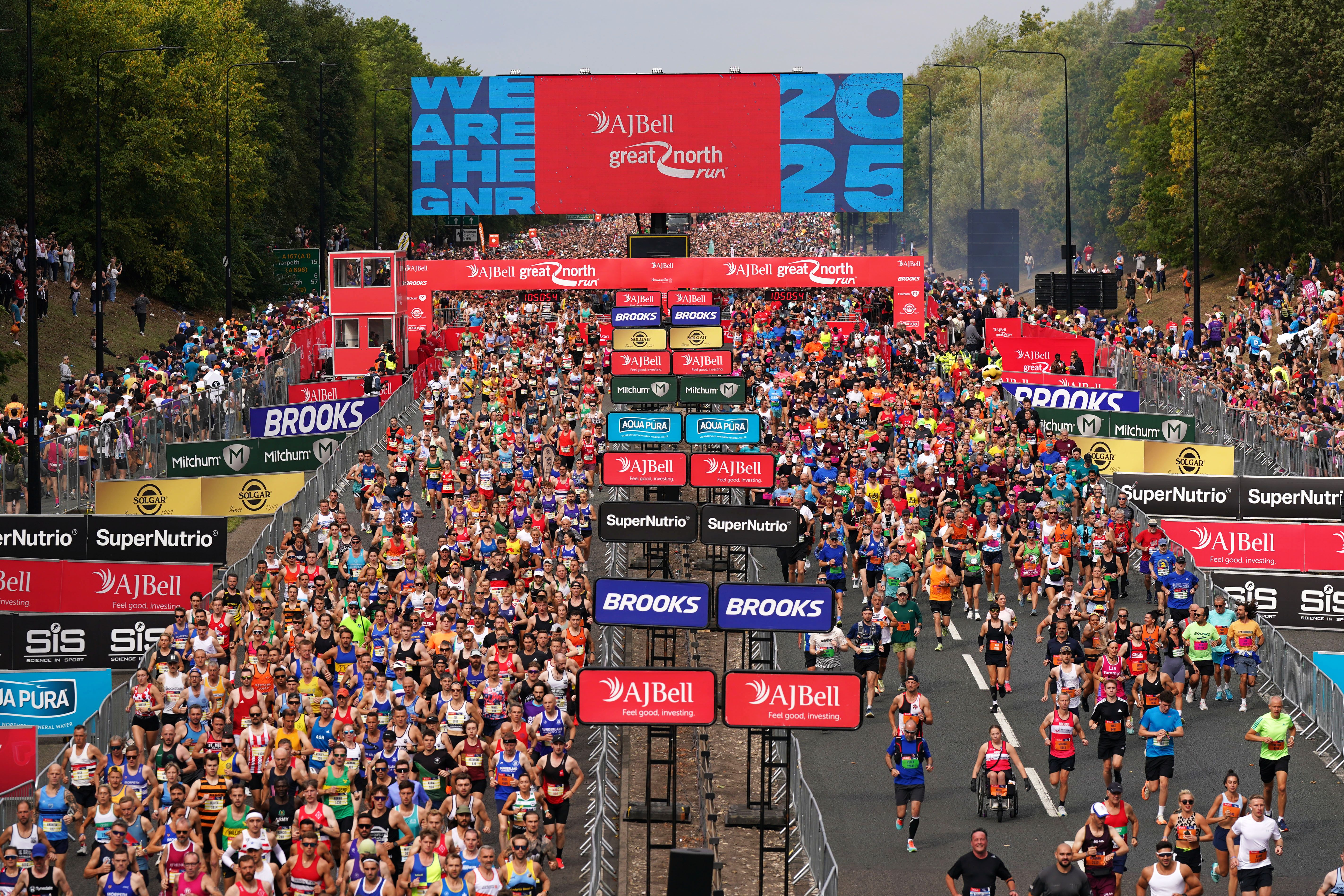 The elite men and mass start is seen as runners participate in the 44th Great North Run on September 7, 2025 in Newcastle upon Tyne, England. The Great North Run is the world’s biggest half marathon, attracting 60,000 runners each year to its iconic 13.1 mile route from Newcastle to South Shields. (Photo by Ian Forsyth/Getty Images)