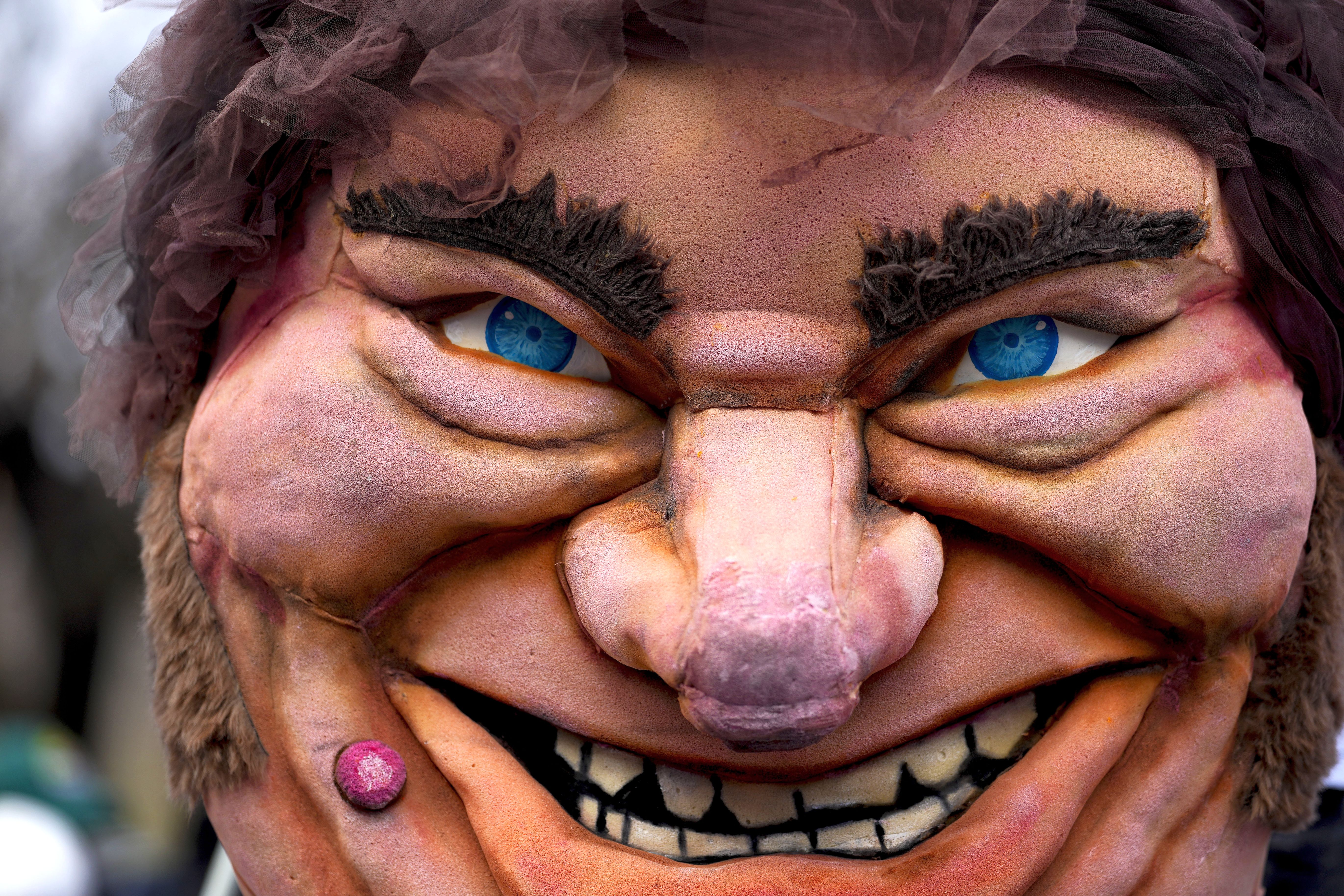A large puppet of Argentine President Javier Milei is held by a protester outside a government depot for food storage where people gather to demand the release of supplies for soup kitchens, which depend on the government for some of their food supply, in Buenos Aires, Argentina, Wednesday, May 29, 2024. (Photo by Natacha Pisarenko/AP Photo)
