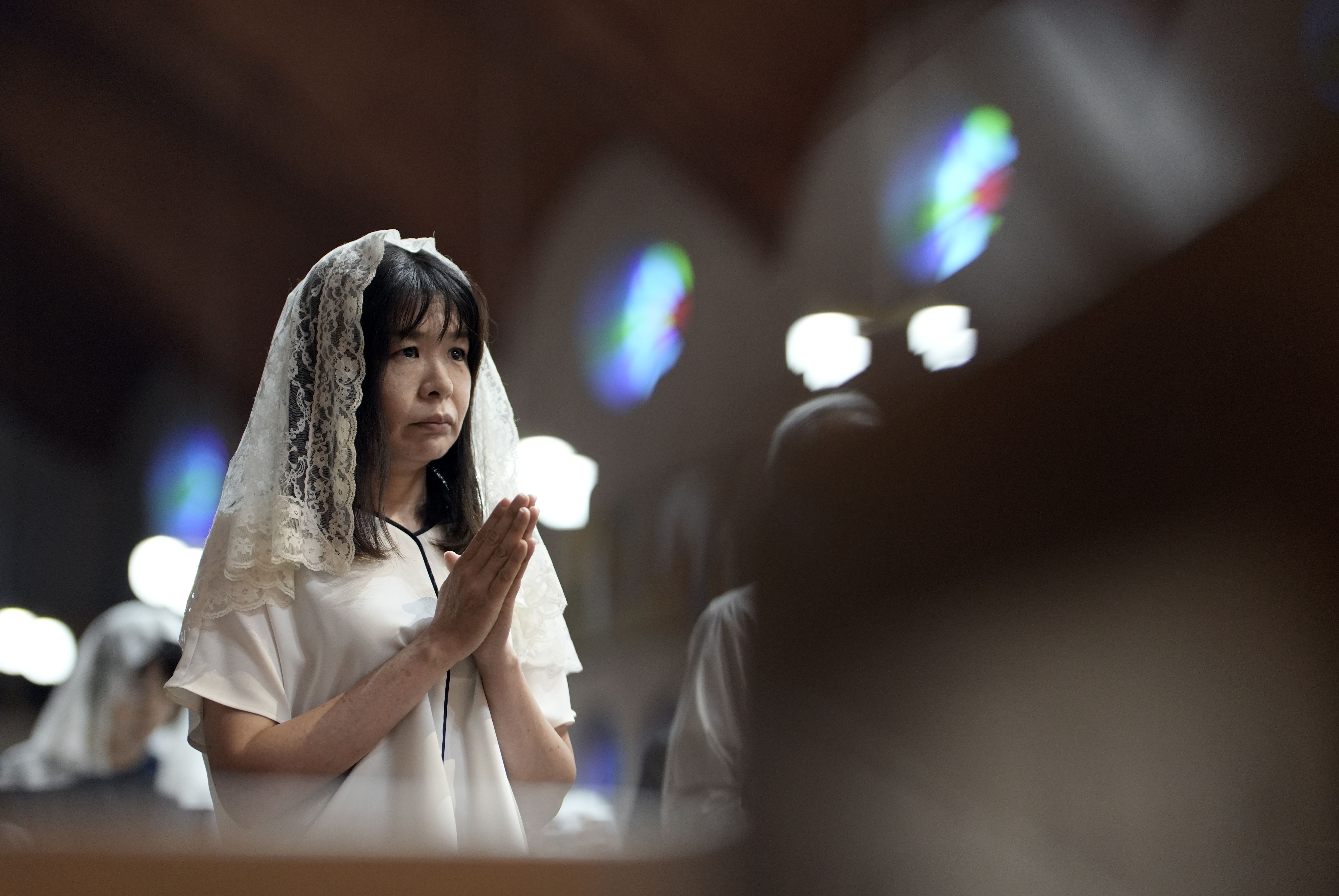 A churchgoer prays during an early morning mass at Urakami Cathedral in Nagasaki, Japan, 09 August 2025, the day of the 80th anniversary of the atomic bombing. In 1945, the United States dropped two nuclear bombs over the cities of Hiroshima and Nagasaki on 06 and 09 August, respectively, killing more than 200,000 people.(Photo by Franck Robichon/ EPA)