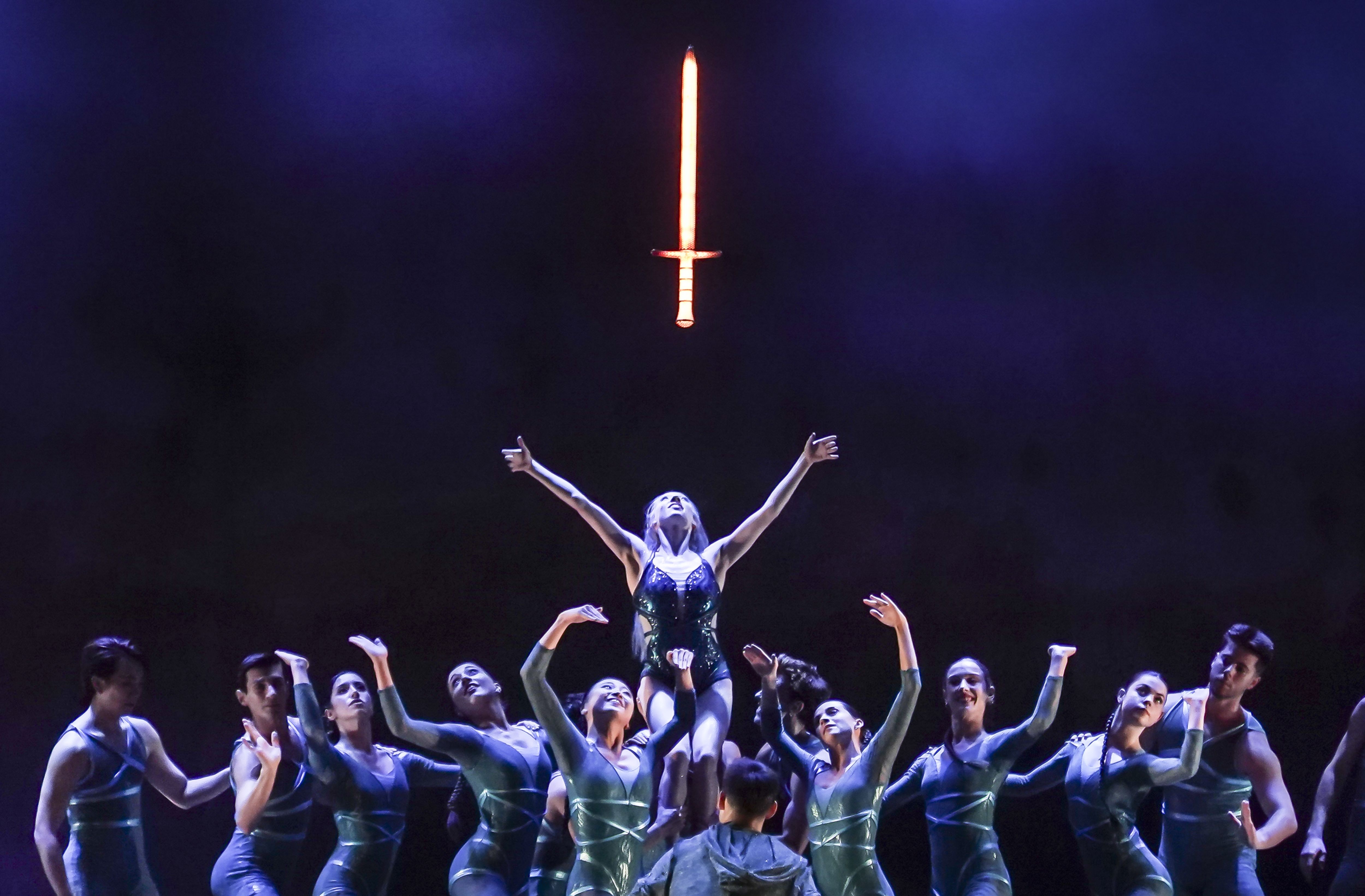 Heather Lehan (centre) playing Lady of the Lake, performs during the dress rehearsal for Northern Ballet's production of Merlin at Leeds Grand Theatre in UK on Friday, September 12, 2025. (Photo by Danny Lawson/PA Images via Getty Images)