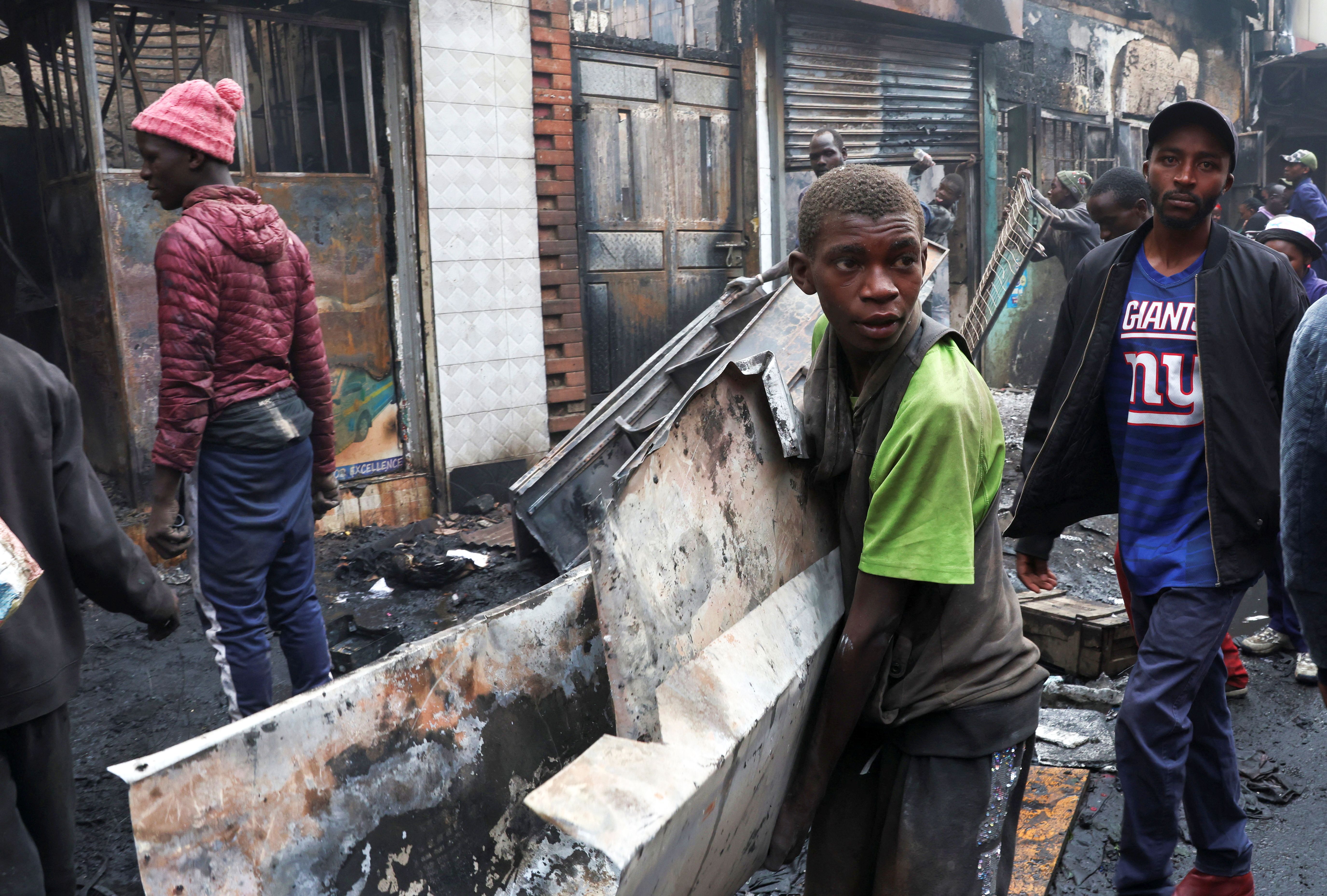 People salvage metal from the premises of businesses burnt during demonstrations to mark the first anniversary of the deadly 2024 anti-government protests that drew widespread condemnation over the use of force by security agencies, in downtown Nairobi, Kenya on June 26, 2025. (Photo by Monicah Mwangi/Reuters)