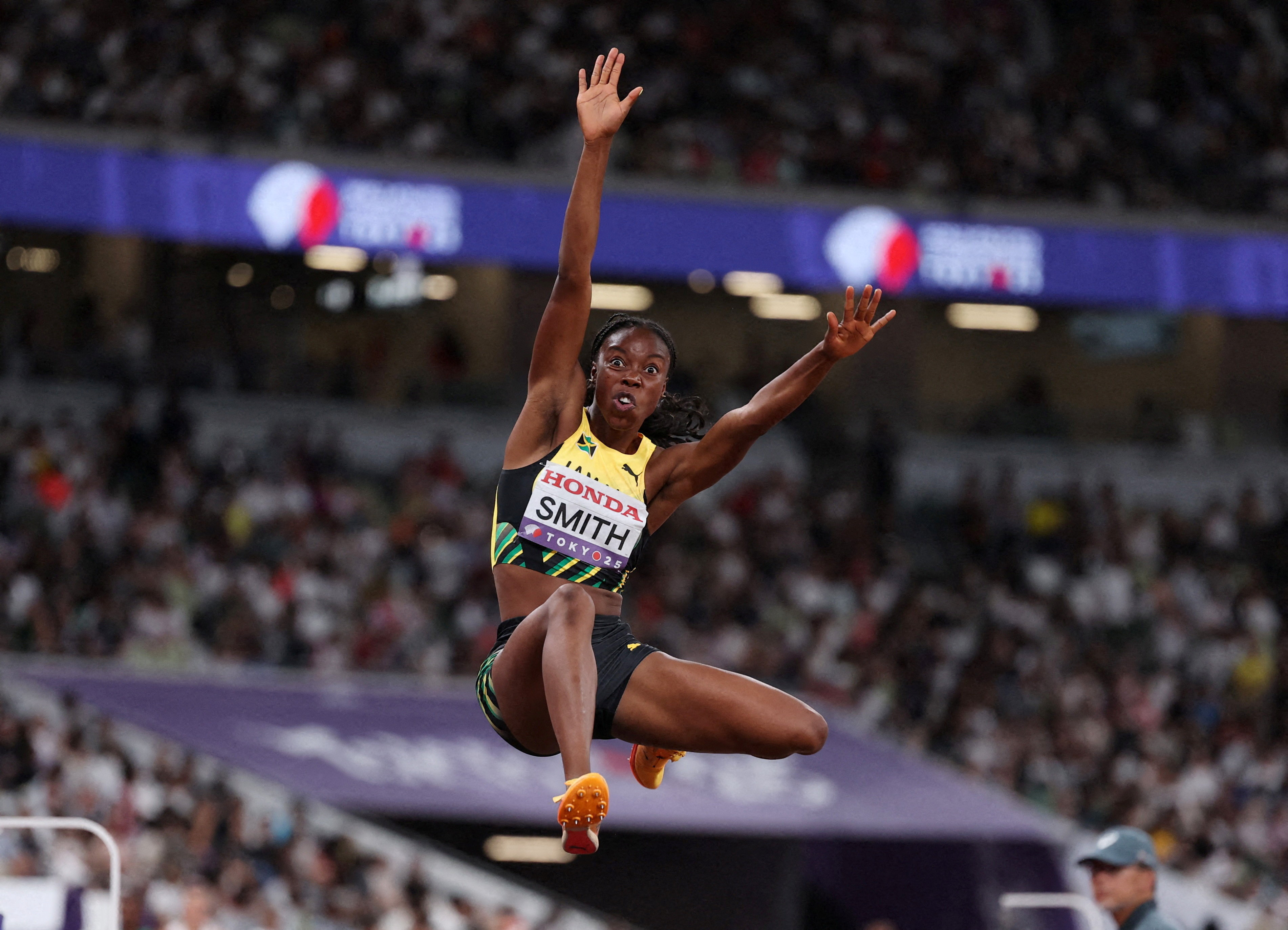 Jamaica's Ackelia Smith in action during the Women's Long Jump Qualification on September 13, 2025. (Photo by Edgar Su/Reuters)