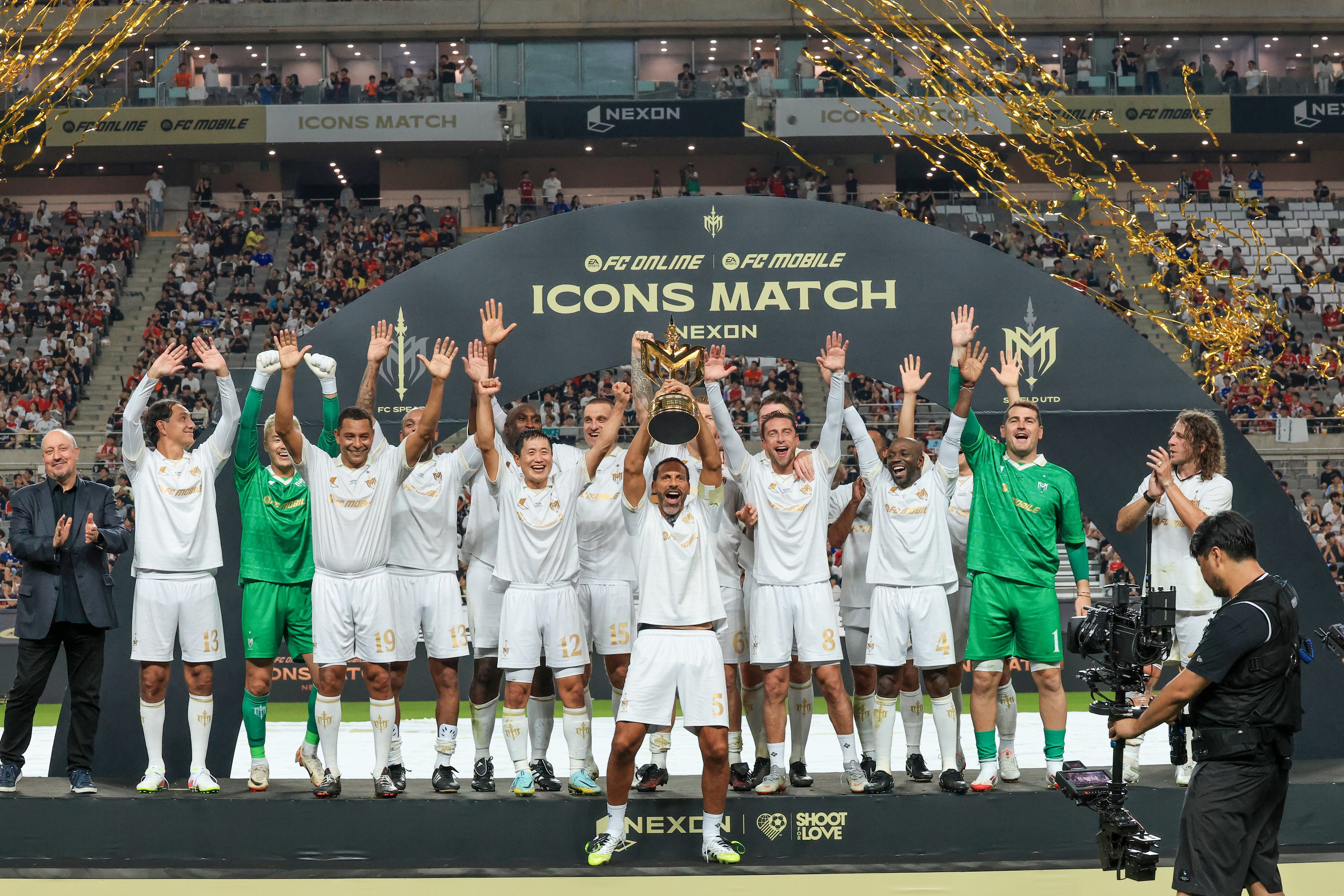 The defense team celebrating their victory at the “2025 Icon Match” held at Seoul World Cup Stadium in Mapo-gu, Seoul on the afternoon of the September 14, 2025. (Photo by Park Seong-won)