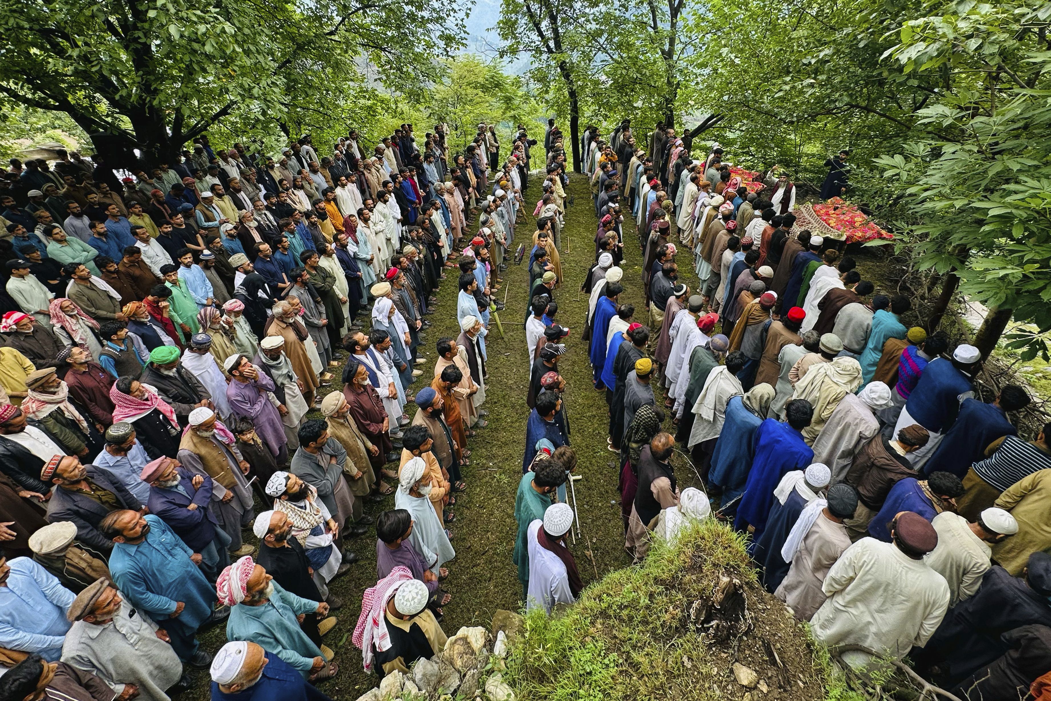 People attend funeral prayers of the victims of a cloudburst incident, sudden intense downpours, in Naryan Behak village near Muzaffarabad, the main town of Pakistan's controlled Kashmir, Friday, August 15, 2025. (Photo by M.D. Mughal/AP Photo)