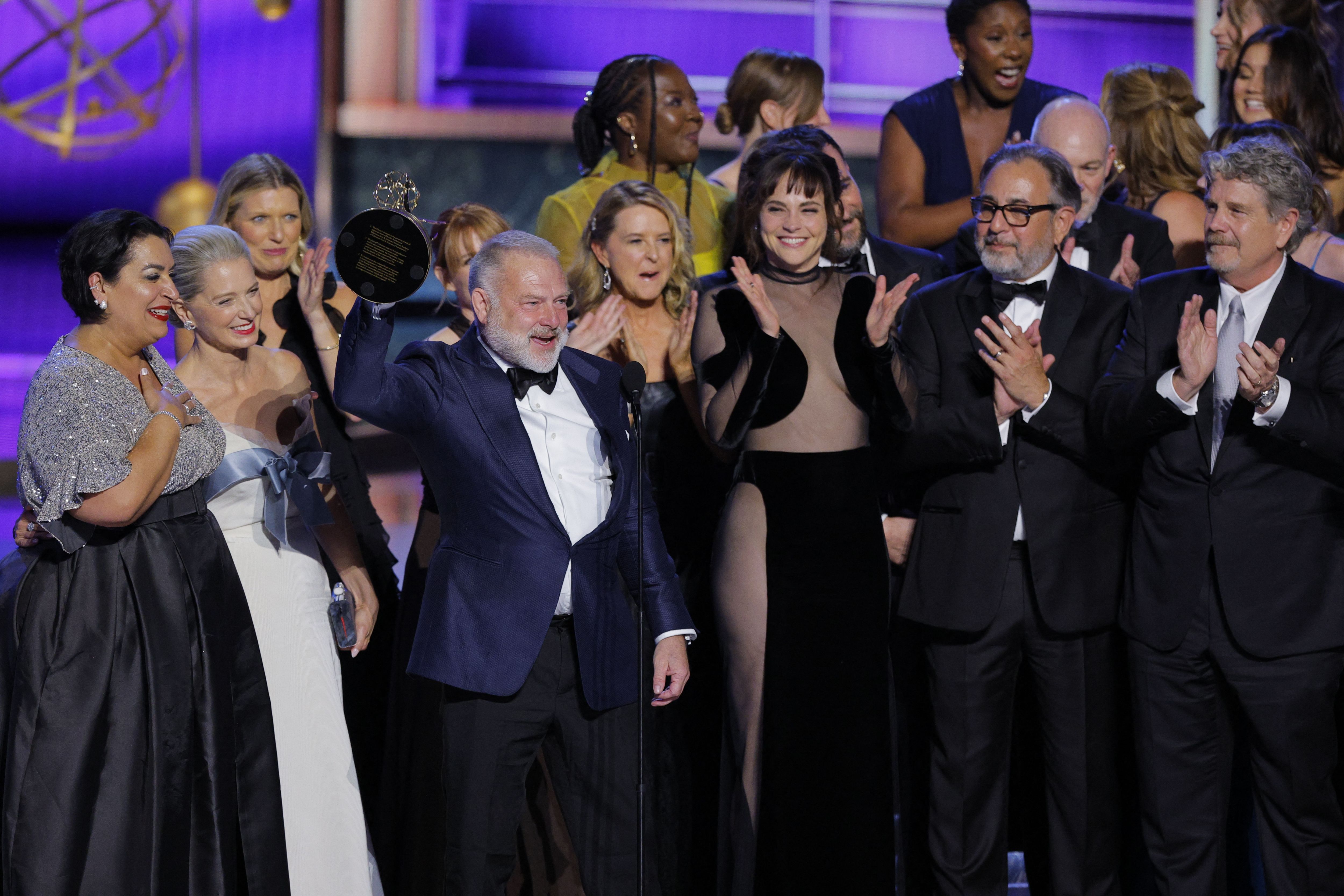 Producer R. Scott Gemmill accepts the Outstanding Drama Series award for “The Pitt” at the 77th Primetime Emmy Awards in Los Angeles, California, U.S., September 14, 2025. (Photo by Mike Blake/Reuters)
