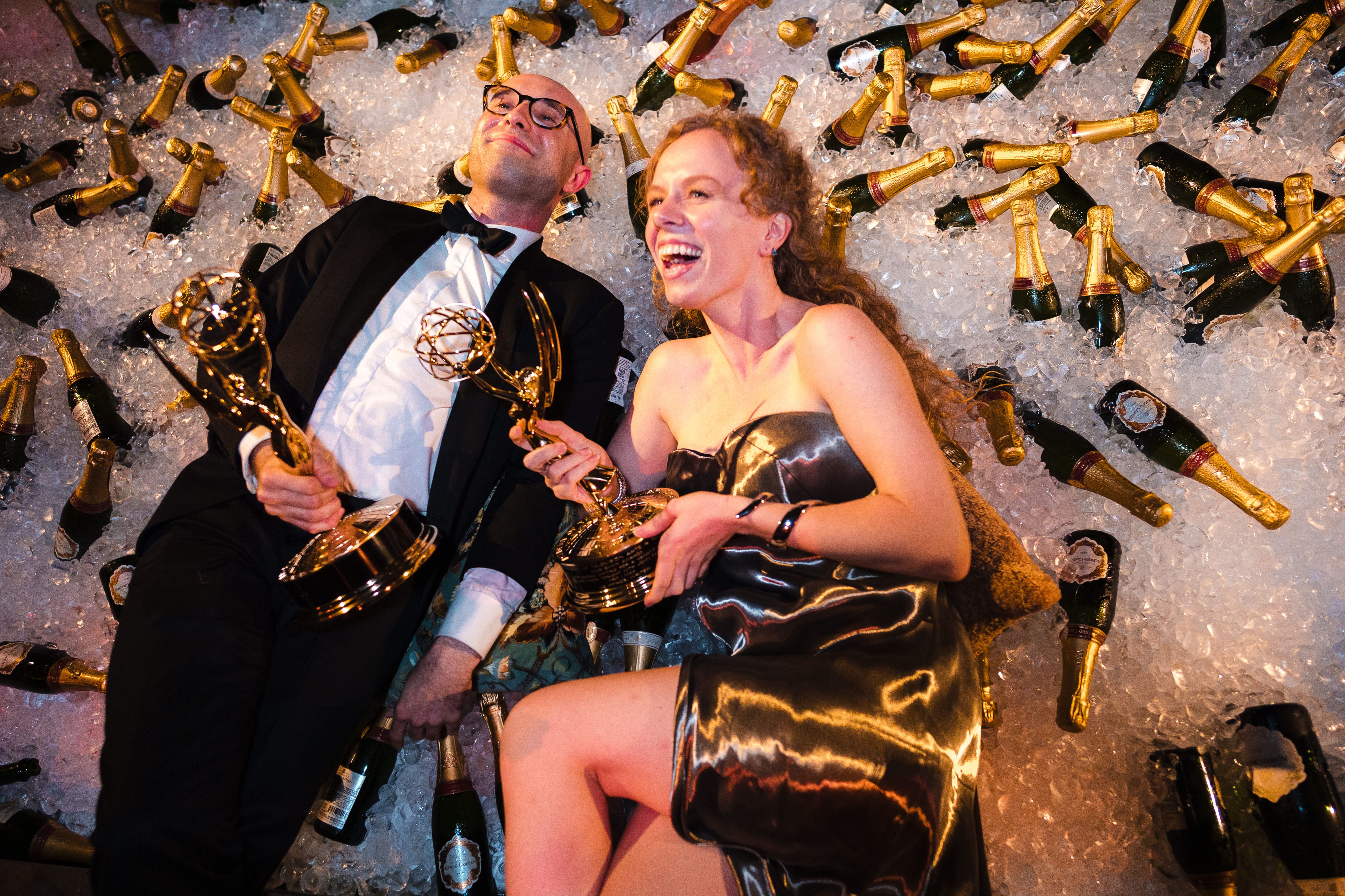 Liz Hynes (R) attends the HBO Max Primetime Emmy Awards Afterparty at San Vicente Bungalows on September 14, 2025 in West Hollywood, California. (Photo by David Jon/Getty Images for HBO Max)