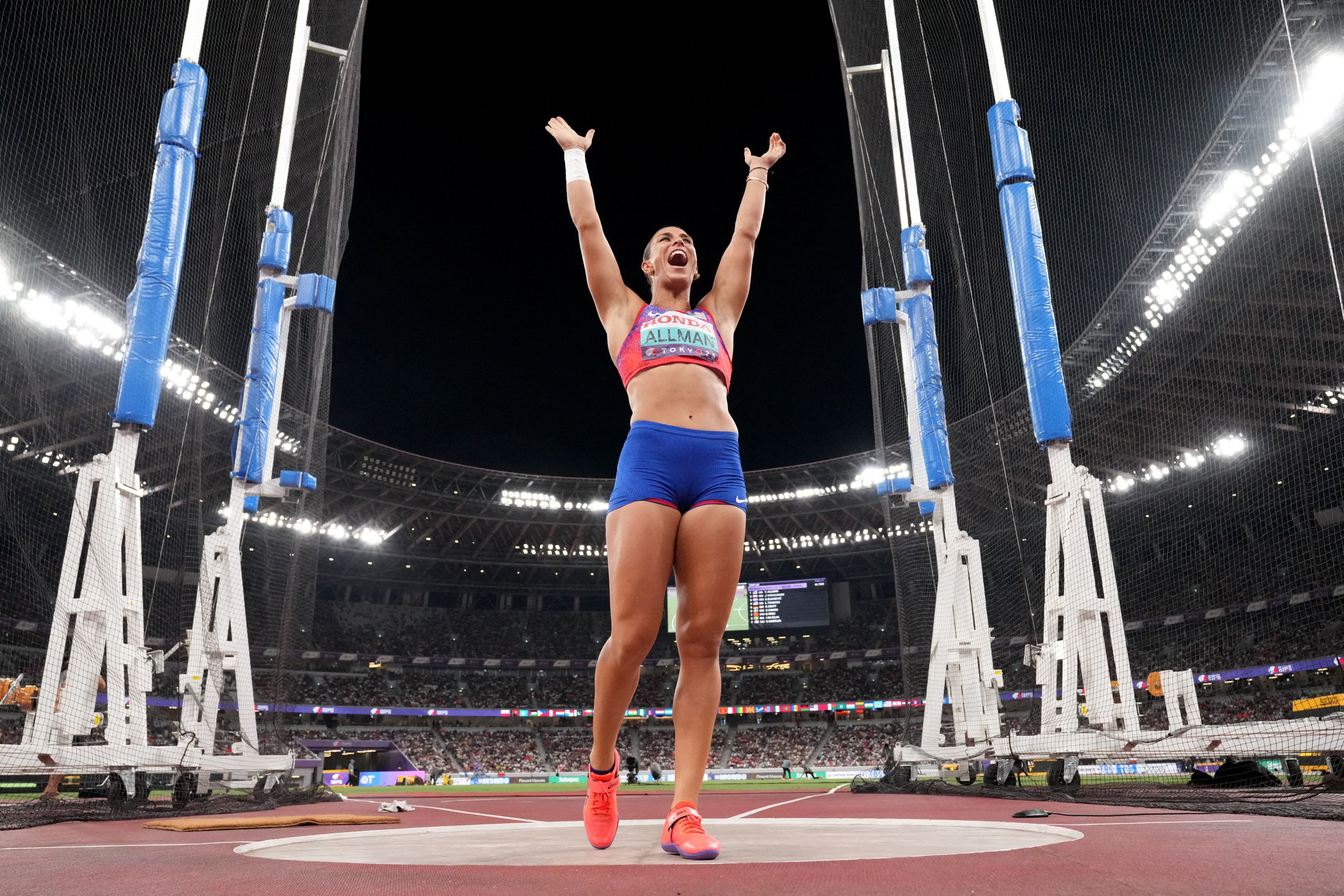 Valarie Allman of the U.S. reacts during the Women's Discus Throw Final on September 14, 2025. (Photo by Fabrizio Bensch/Reuters)