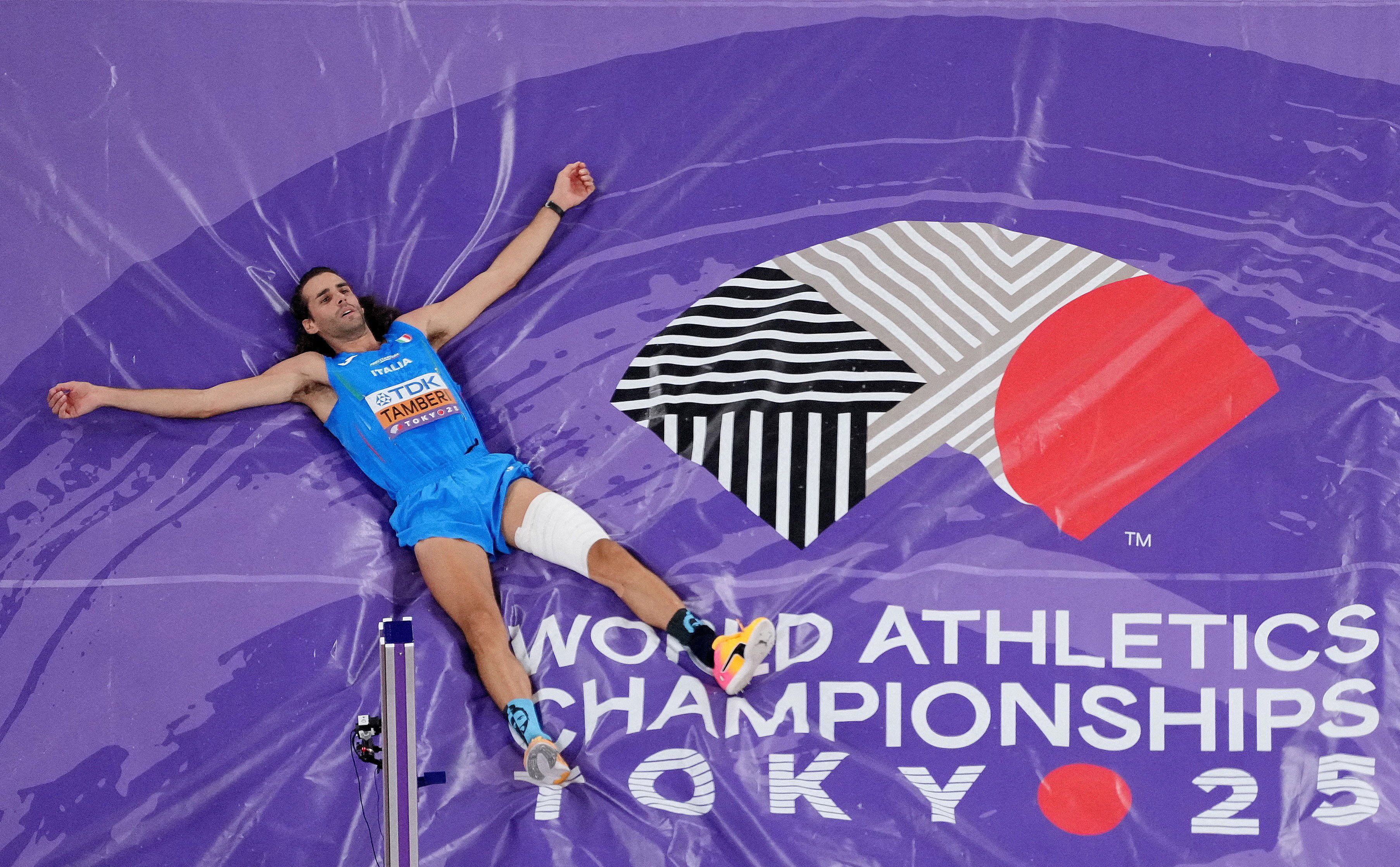 Italy's Gianmarco Tamberi reacts after failing to qualify in the Men's High Jump Qualification on September 14, 2025. (Photo by Fabrizio Bensch/Reuters)