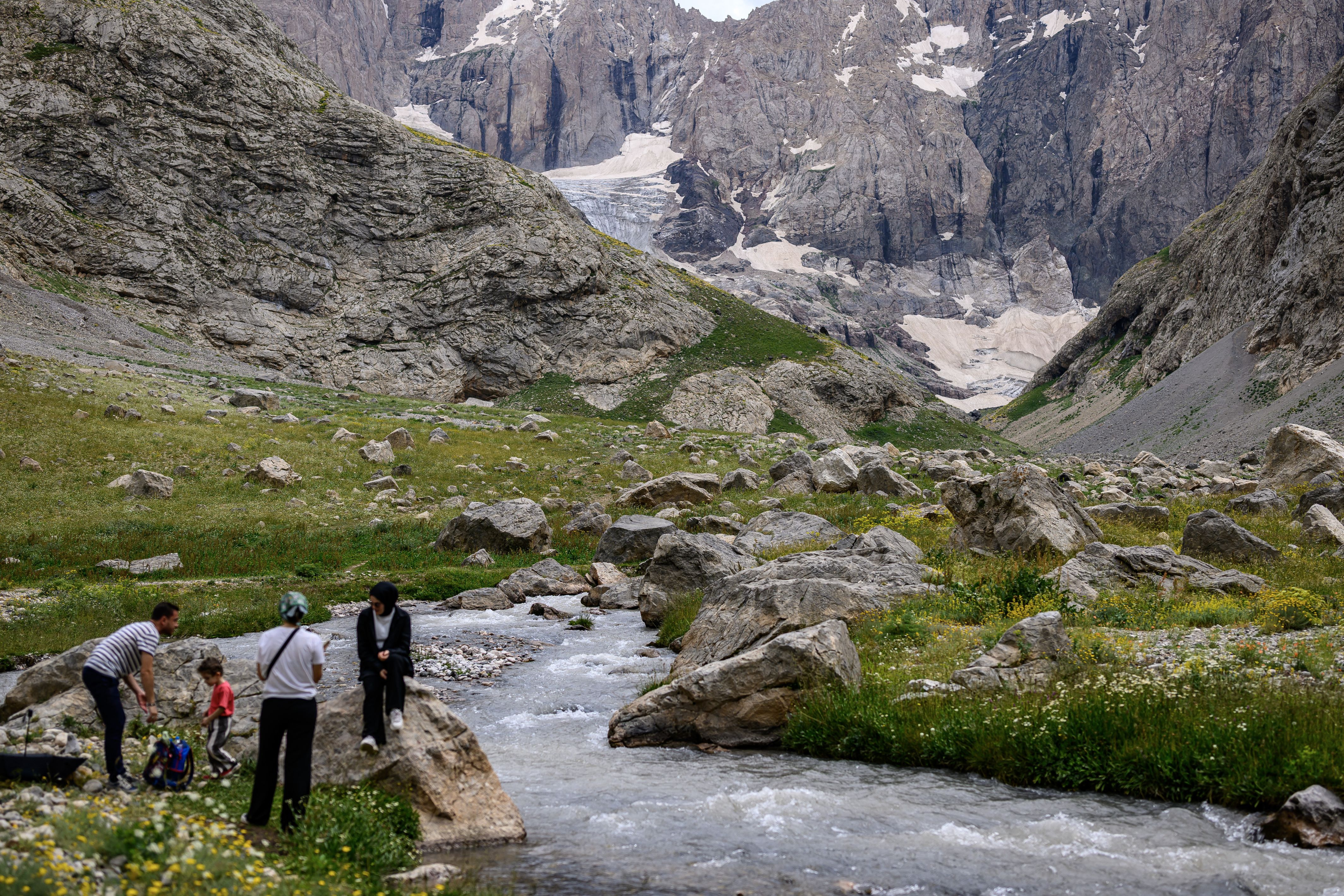 People rest on the Cilo Glaciers of Turkey's southeastern Hakkari province, on July 13, 2025. (Photo by Yasin Akgul/AFP Photo)