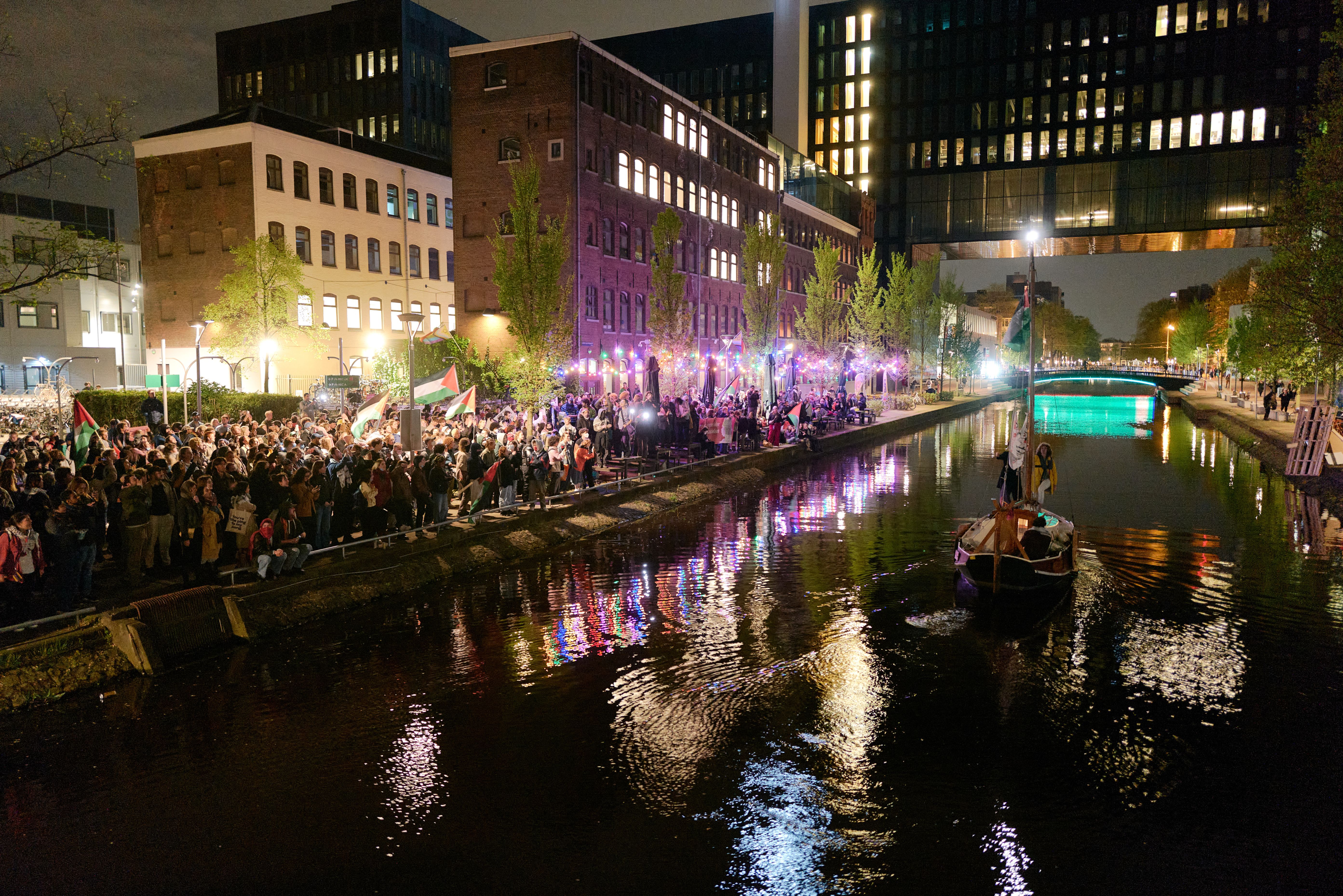 Students set up a camp and barricades on the campus of the University of Amsterdam to support Gaza on May 6, 2024, in Amsterdam, Netherlands. The Amsterdam-based student collective says it is promoting justice in Palestine, raising awareness about Israeli settler colonialism, and fighting for an academic boycott. (Photo by Pierre Crom/Getty Images)