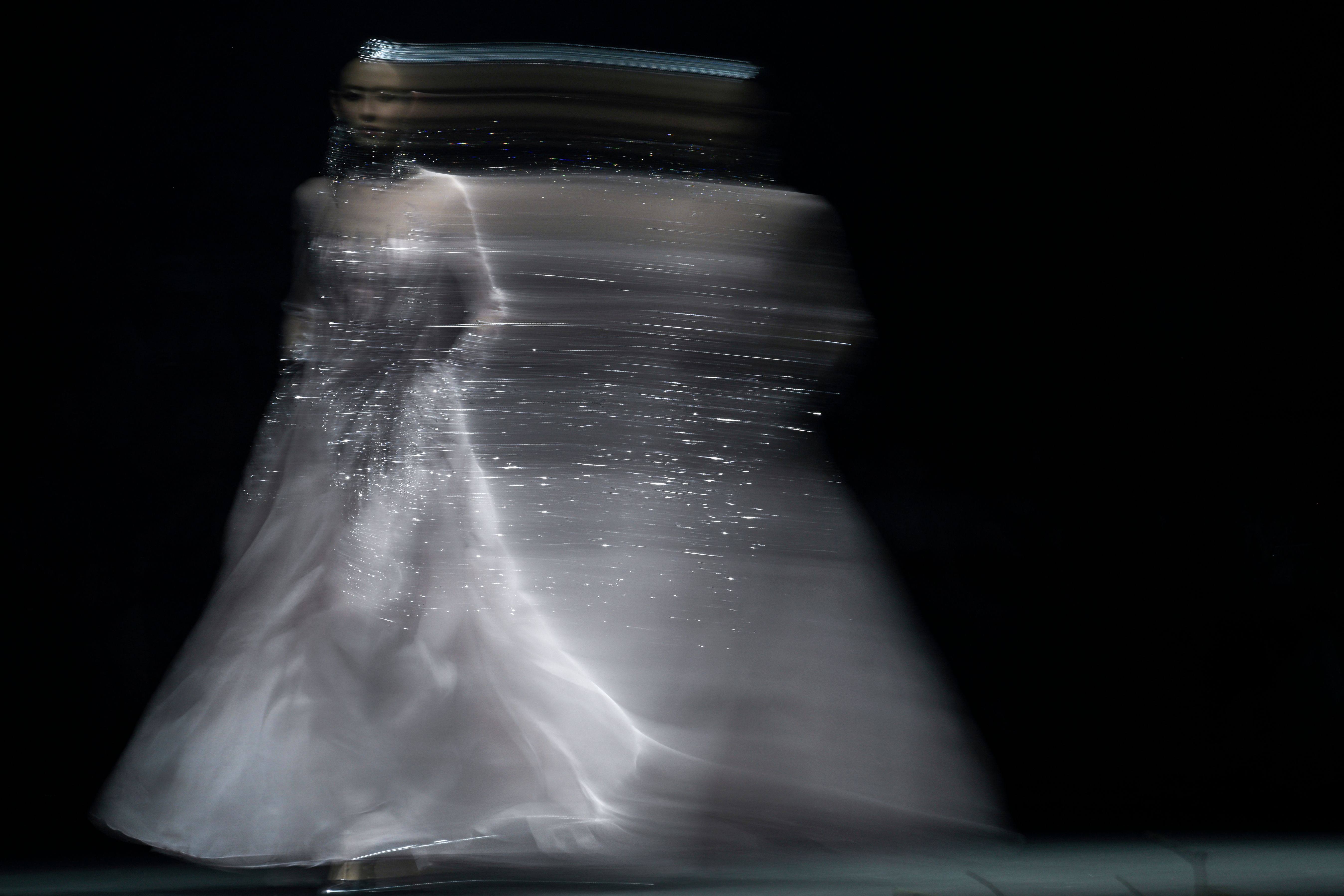 A model displays a creation from the Saint Joy collection by Bian Huizhong during China Fashion week in Beijing on September 8, 2025. (Photo by Wang Zhao/AFP Photo)