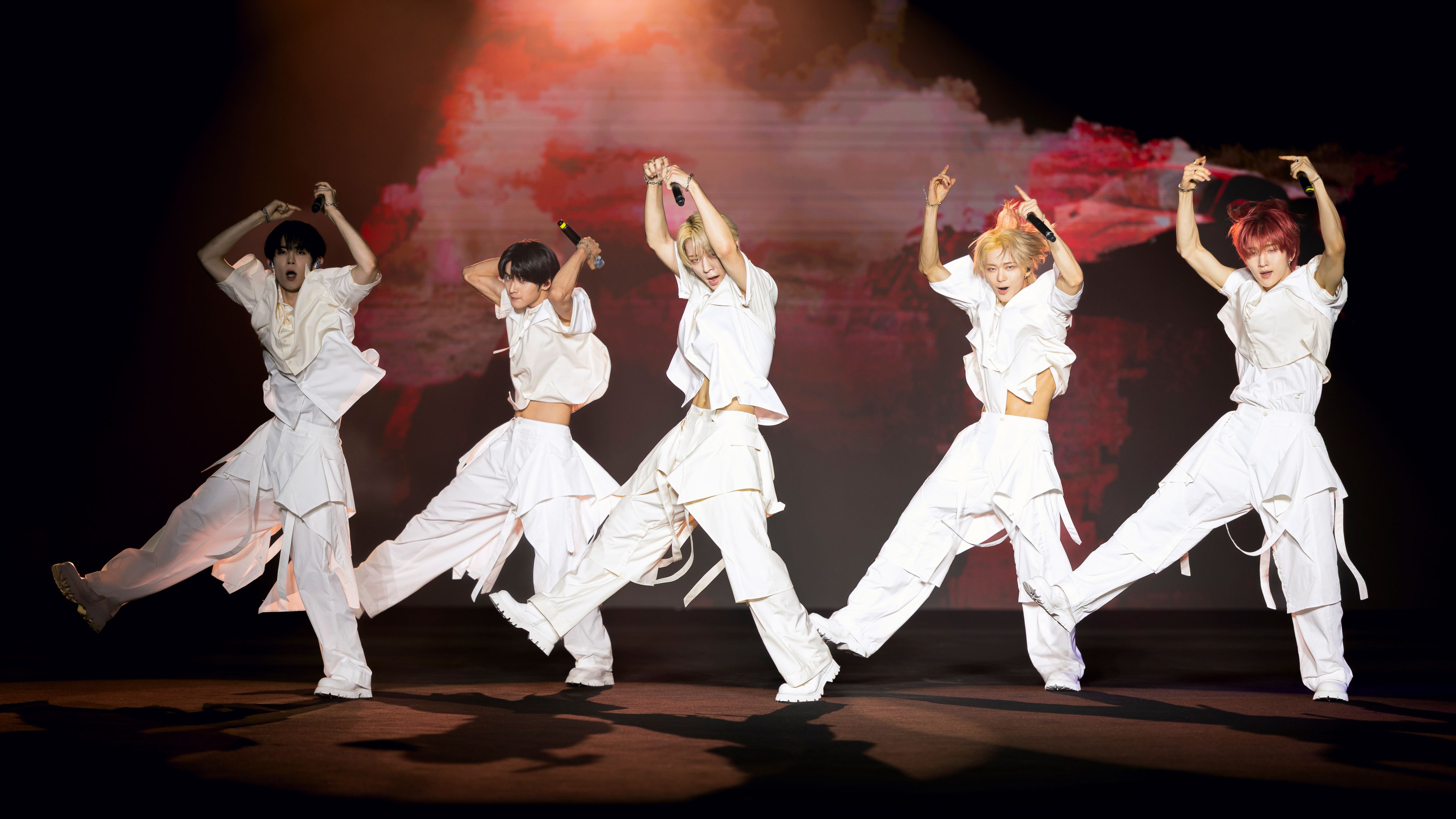 Hyeonbin, Yoon, Jinhyuk, Siyun, and Yeonwoo of South Korean boy band NOWZ performs on the runway as a part of Arts De Base show at Seoul Fashion Week S/S 2026 on September 07, 2025 in Seoul, South Korea. (Photo by Justin Shin/Getty Images)