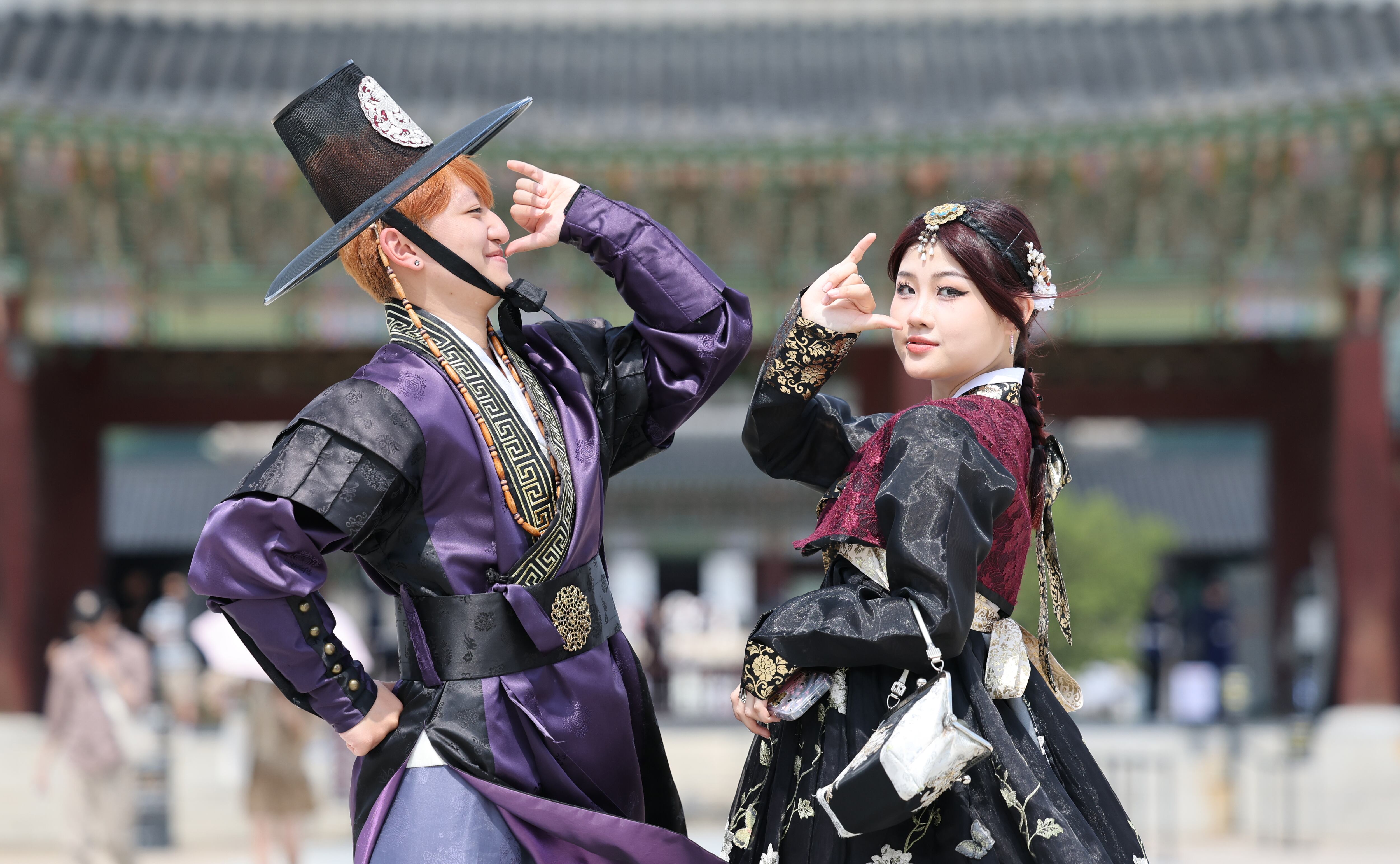 Wearing hats and dancing to Sodapop. As the popularity of “K-Pop Demon Hunters (K-Pop Demon Hunters)” spreads around the world, foreign tourists wearing hats and dancing to the K-Pop Demon Hunters song “Sodapop” are seen in Gwanghwamun, Seoul on the afternoon of the August 29, 2025. (Photo by Park Seong-won)