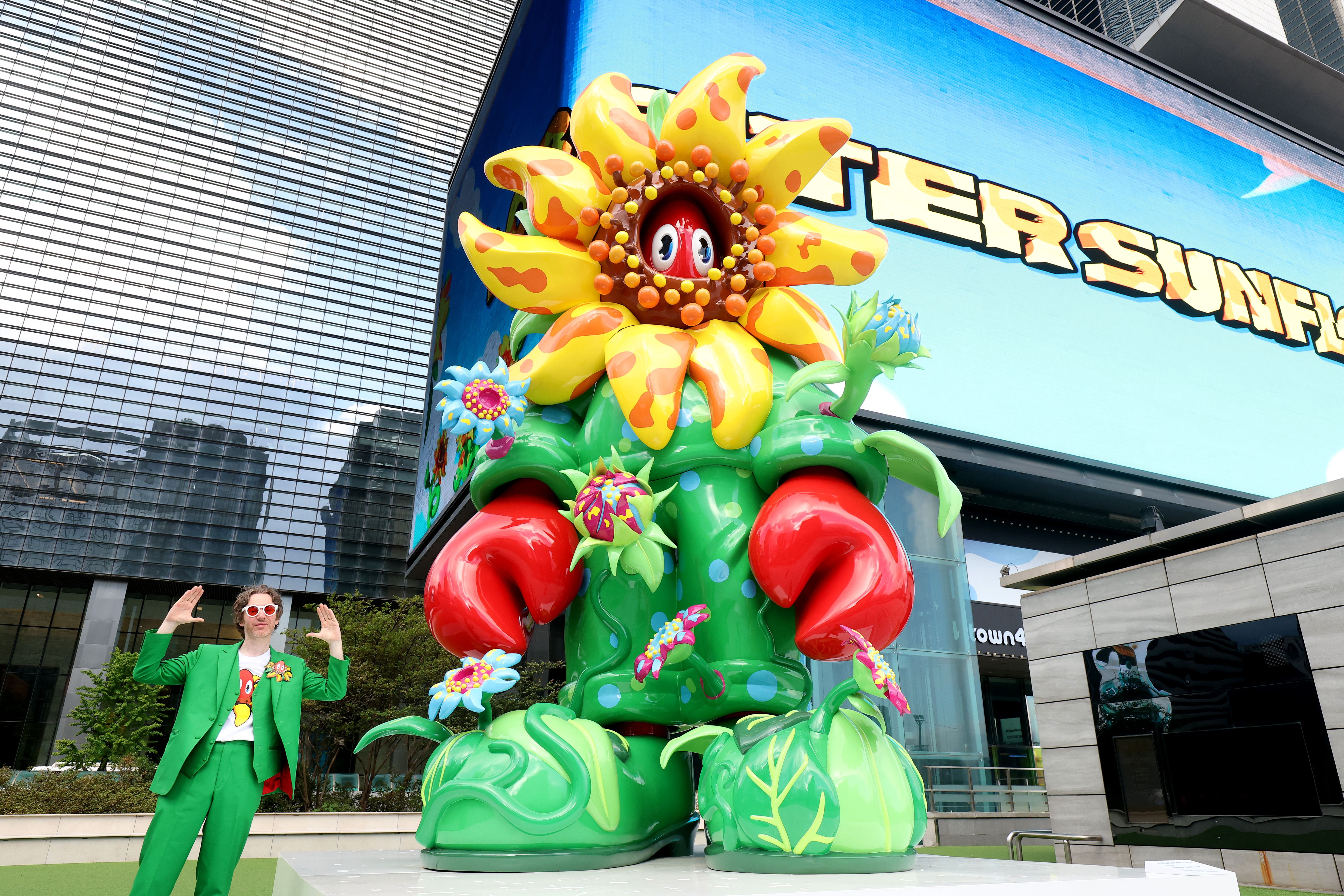 Philip Colbert poses with his monumental steel sculpture and video installation titled “Lobster Sunflower” at COEX K-POP Square, presented by COEX ART PROJECT on September 02, 2025 in Seoul, South Korea. (Photo by Chung Sung-Jun/Getty Images for Philip Colbert)