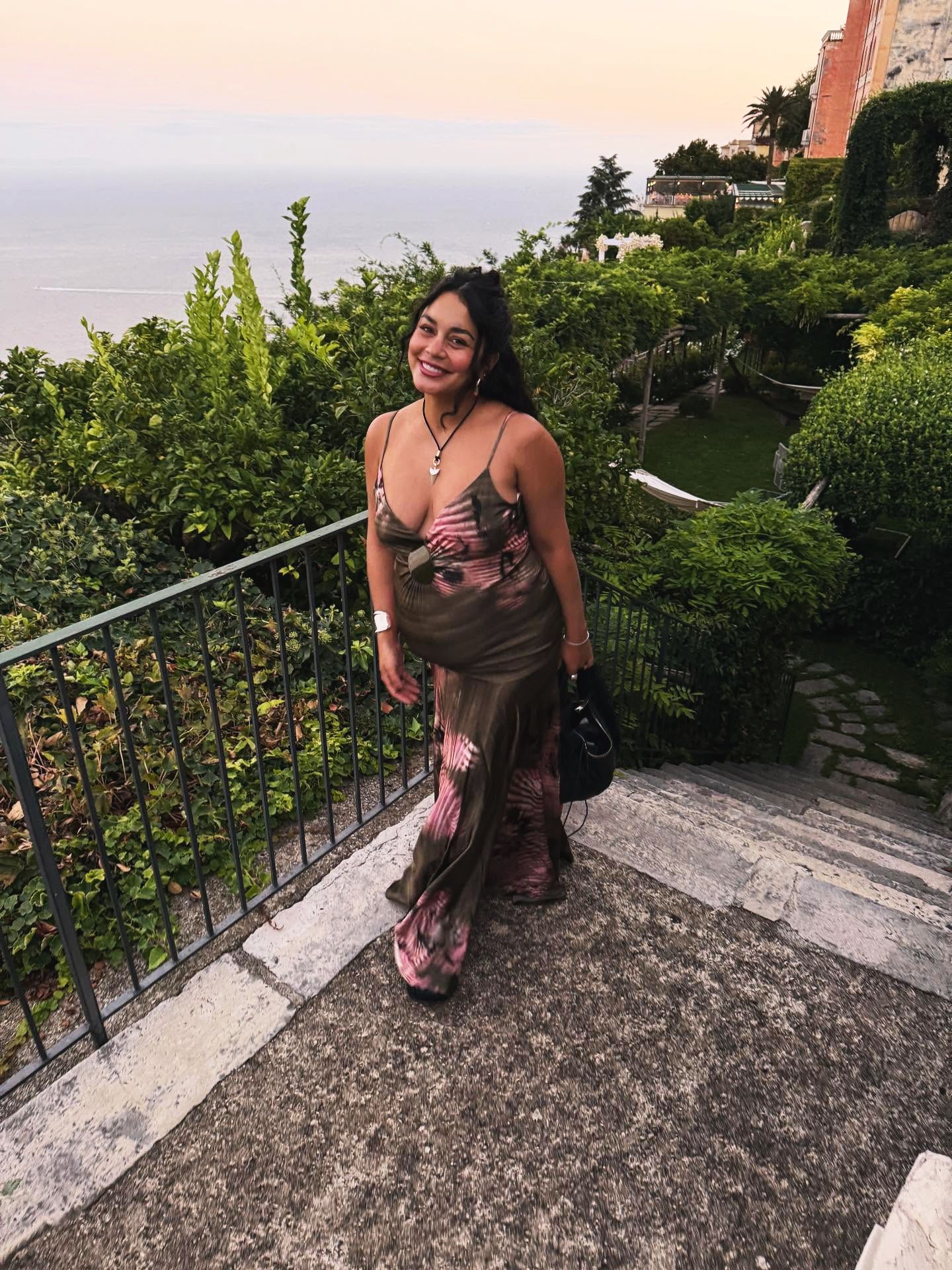 American actress and singer Vanessa Hudgens shows off her growing baby bump while taking in a sunset on September 16, 2025. (Photo by vanessahudgens/Instagram)