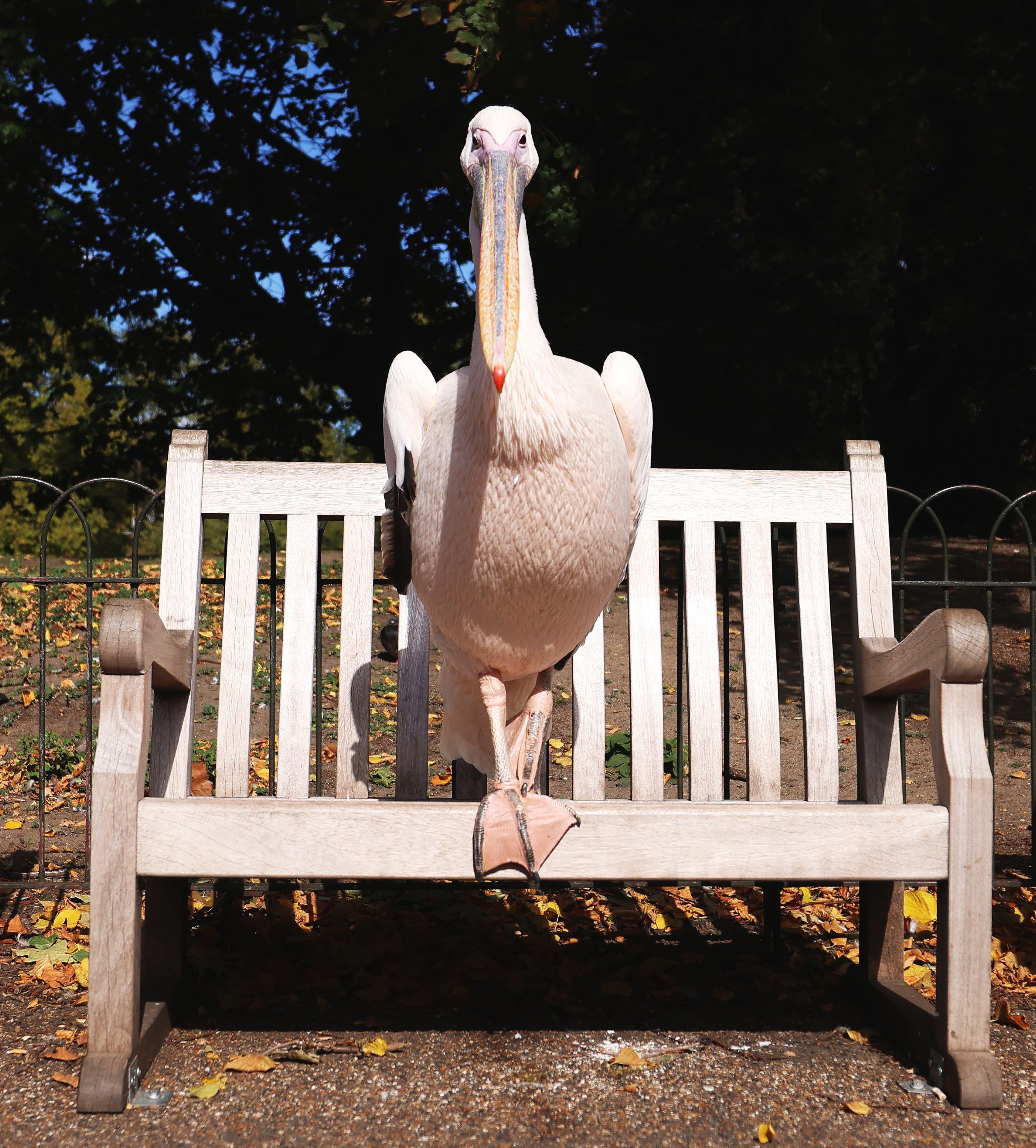 A St. James’s Park pelican sits on a park bench at St. James’s Park in London, Britain, 25 September 2025. Pelicans have been part of St. James’s Park for hundreds of years and remain a popular sight for visitors. First introduced in 1664 as a gift from the Russian ambassador, around forty pelicans have since made the park their home. (Photo by Andy Rain/EPA)
