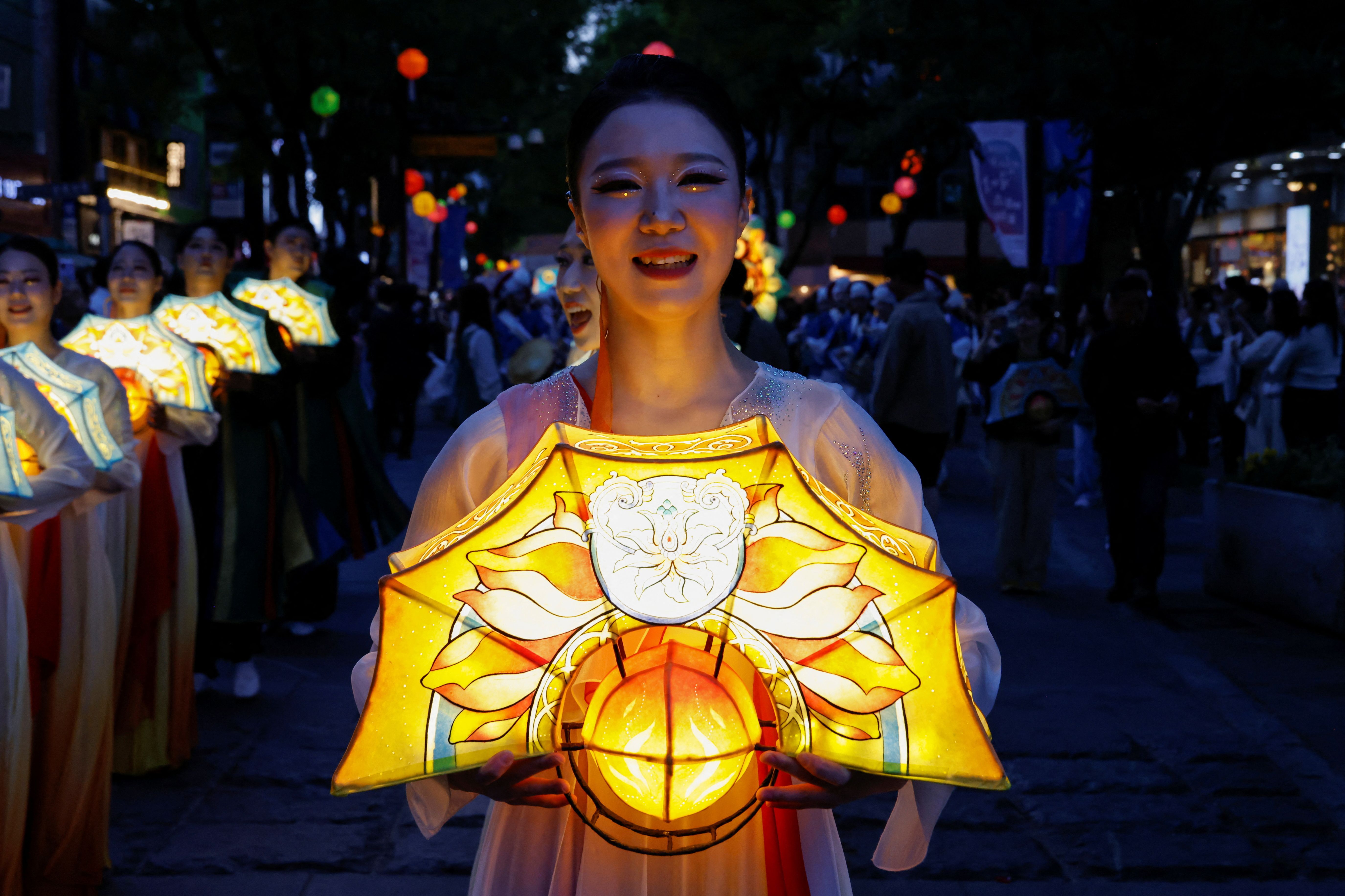 Buddhist believers hold lanterns during a Lotus Lantern parade in celebration of the upcoming birthday of Buddha in Seoul, South Korea, on May 12, 2024. (Photo by Kim Soo-hyeon/Reuters)