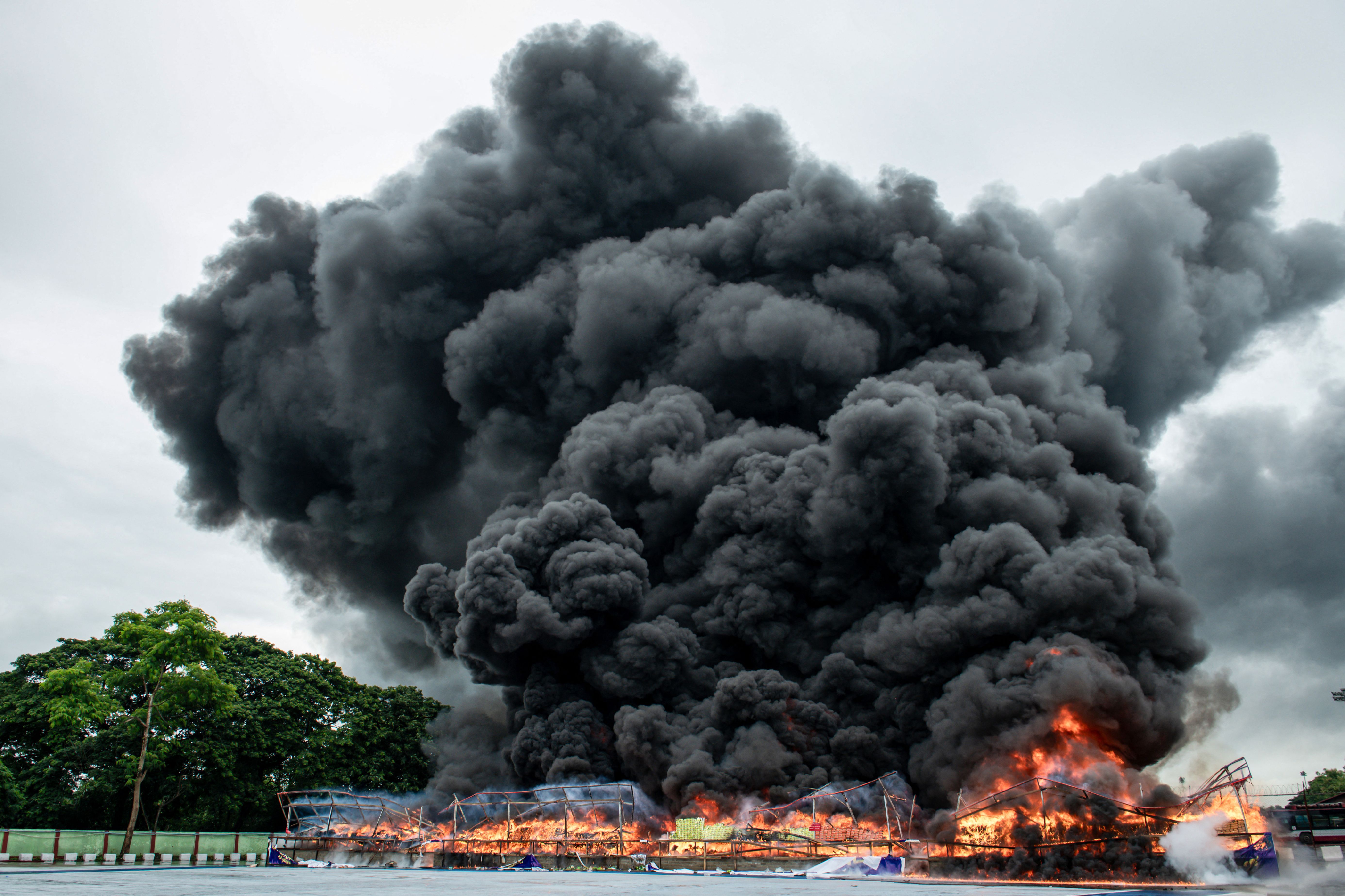 Smoke rises during a destruction ceremony of seized illegal drugs to mark the UN's “International Day against Drug Abuse and Illicit Trafficking” in Yangon on June 26, 2025. (Photo by Sai Aung Main/AFP Photo)