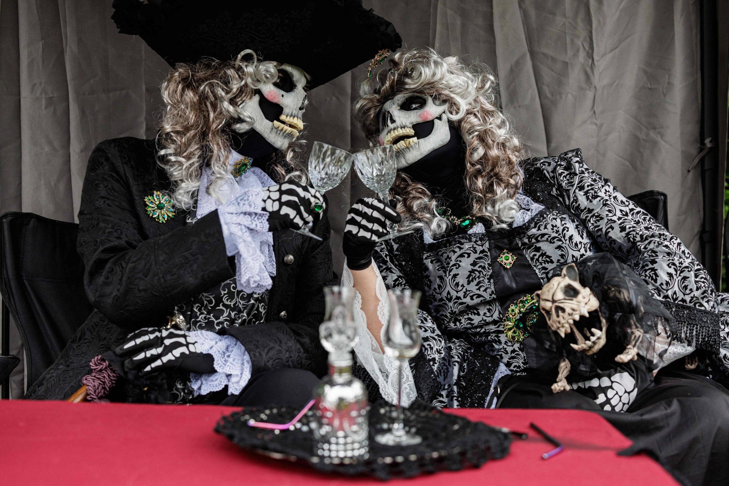 Dressed up people attend a so-called “Victorian Picnic” during the “Wave-Gotik-Treffen” (WGT) festival in Leipzig, eastern Germany, on May 17, 2024. (Photo by Jens Schlueter/AFP Photo)