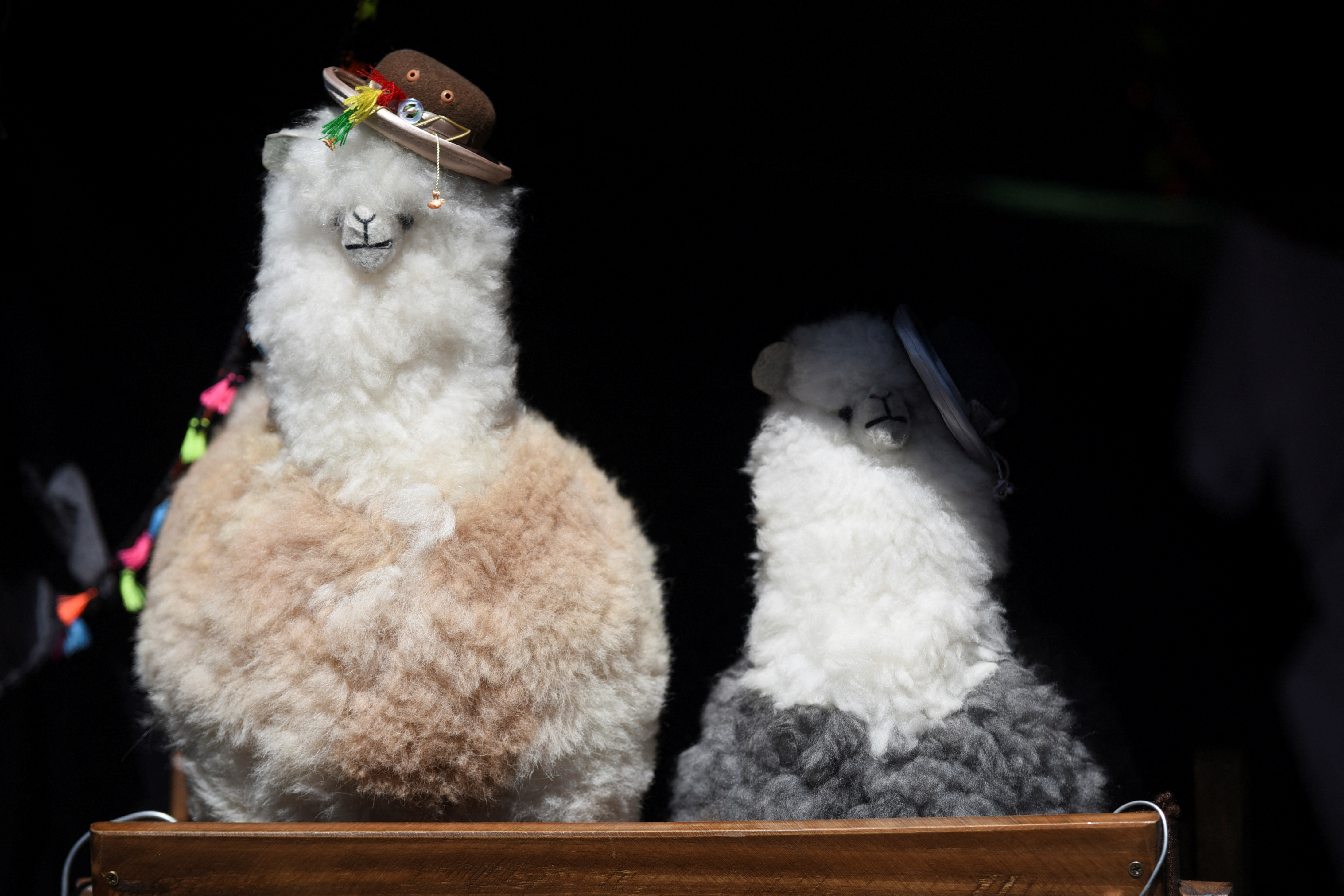 Figures of two llamas with cholita bowler hats are exhibited at the launch of the “International Year of the Camelids 2024”, in La Paz, Bolivia on May 7, 2024. (Photo by Claudia Morales/Reuters)