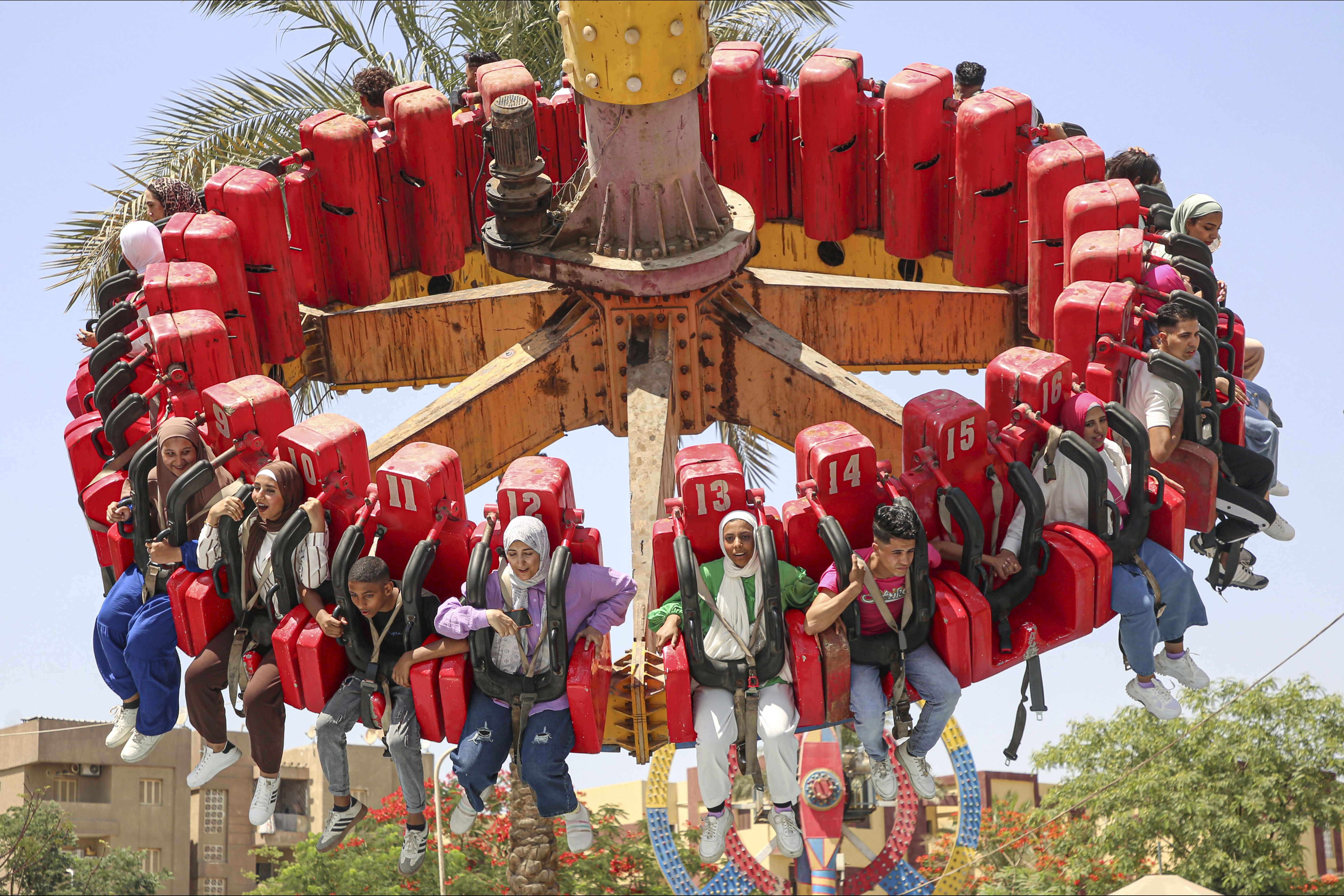 People have fun at an amusement park during the Eid al-Adha holiday in Cairo, Egypt, on June 8, 2025. (Photo by Xinhua News Agency/Rex Features/Shutterstock)