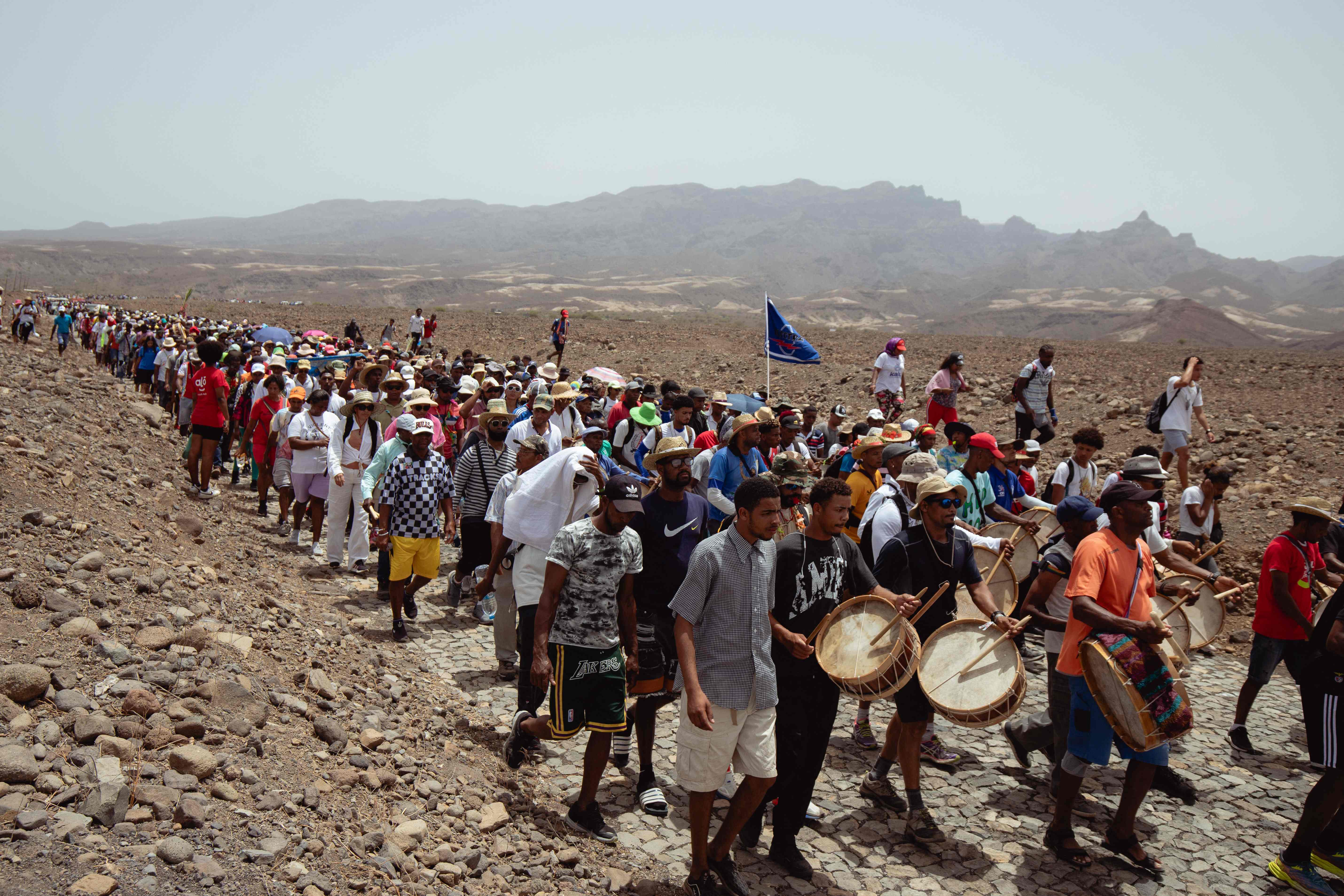 Pilgrims take part in the São João Baptista pilgrimage in Porto Novo on June 23, 2024. São João Baptista is one of the most popular celebrations of the pilgrimage on Santo Antão’s Island. During the procession, pilgrims walk to the beating of the drums for 23 kilometers in a demonstration of their faith and devotion to the Saint. It is an occasion to make promises and thank the saint for their achievements. (Photo by Queila Fernandes/AFP Photo)