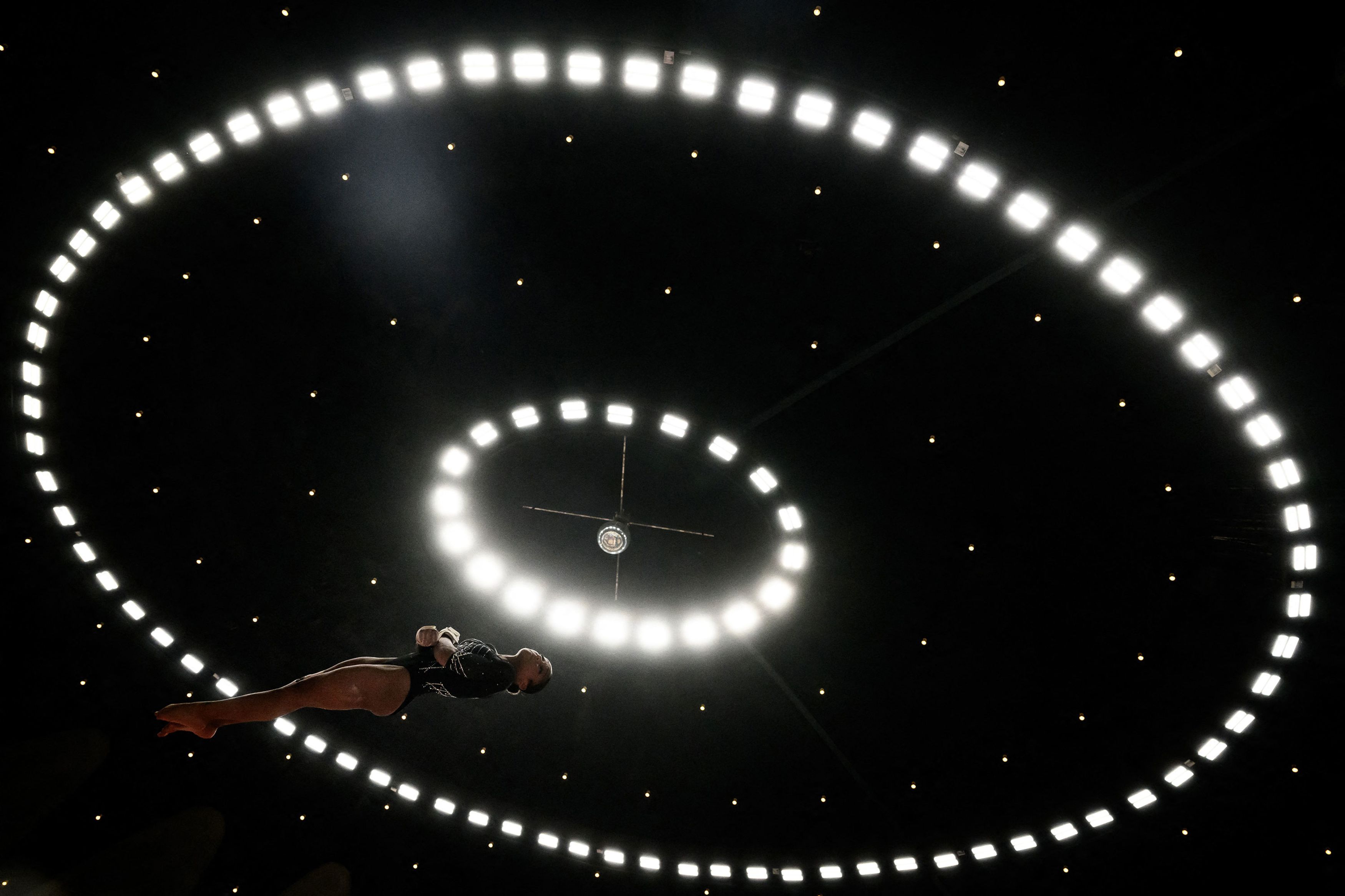 France's Mélanie de Jesus dos Santos competes during the women's 2024 French Gymnastics Championships, in Lyon on June 7, 2024. (Photo by Jeff Pachoud/AFP Photo)