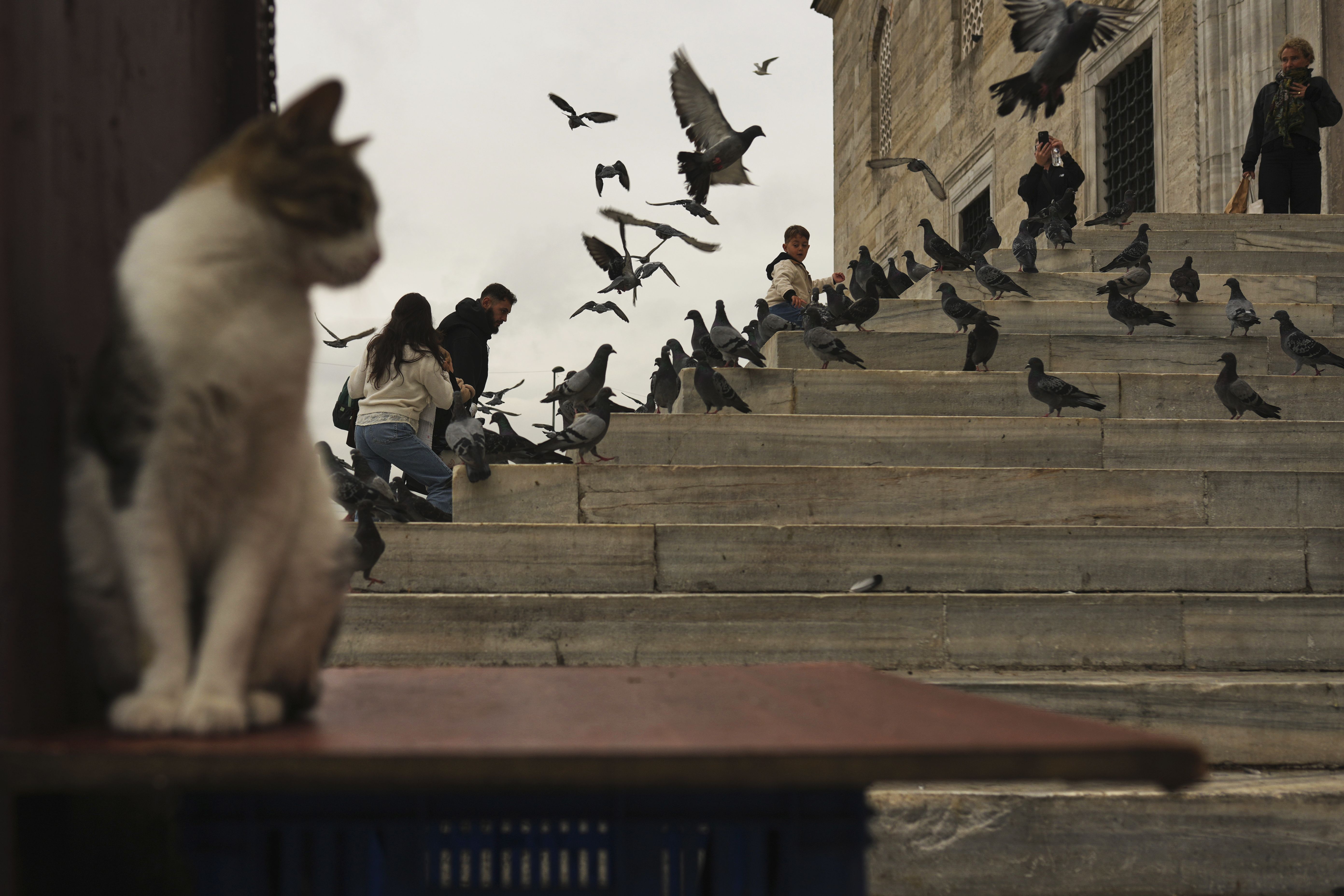 People walk up the main stairs of the Yeni Camii or “New Mosque” at Eminonu, in Istanbul, Monday, September 29, 2025. (Photo by Francisco Seco/AP Photo)