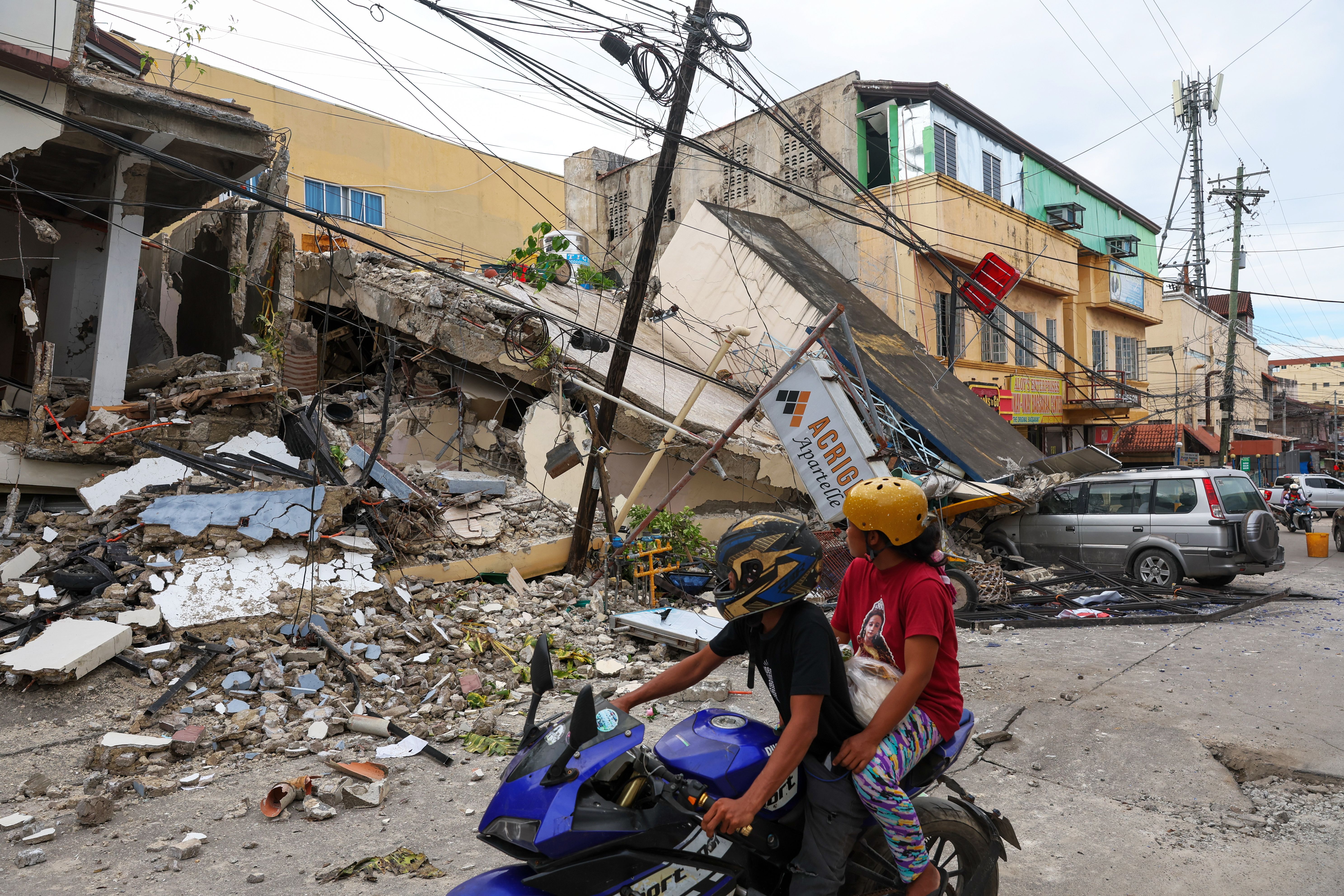 A car is crushed by the debris of partially collapsed buildings, following a magnitude 6.9 earthquake that jolted parts of the island, in Bogo City, Cebu, Philippines on October 01, 2025. Widespread damages to structures and properties, and multiple injuries and deaths have been reported following a powerful magnitude 6.9 earthquake that struck parts of Cebu on September 30. Local governments have declared a state of calamity in response to the situation, amid continued aftershocks. (Photo by Daniel Ceng/Anadolu via Getty Images)