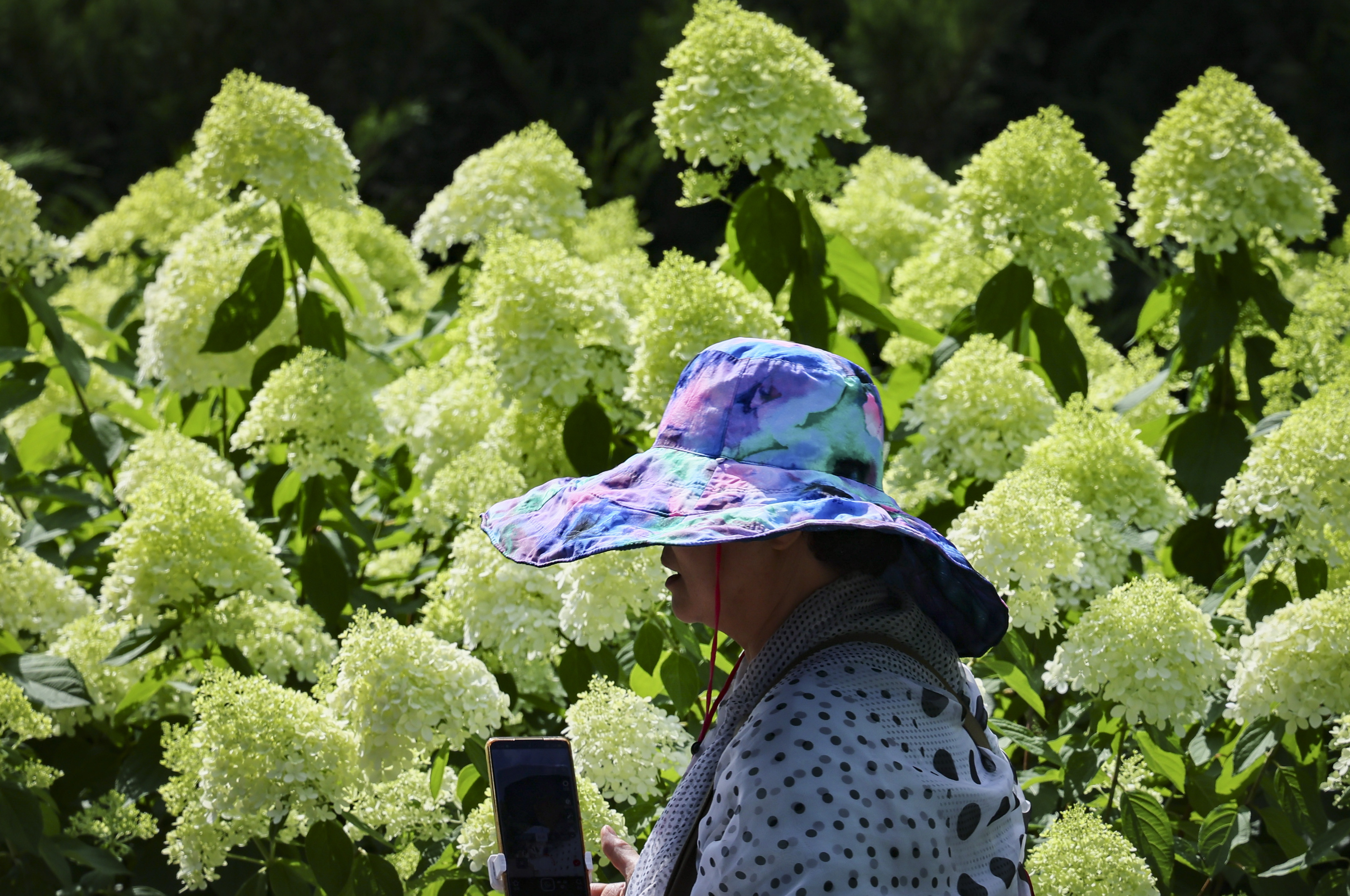 A woman walks on the street on a hot summer day in Moscow, Russia, 29 July 2025. The temperature in the Moscow region reached 31 degrees Celsius. (Photo by Yuri Kochetkov/EPA)
