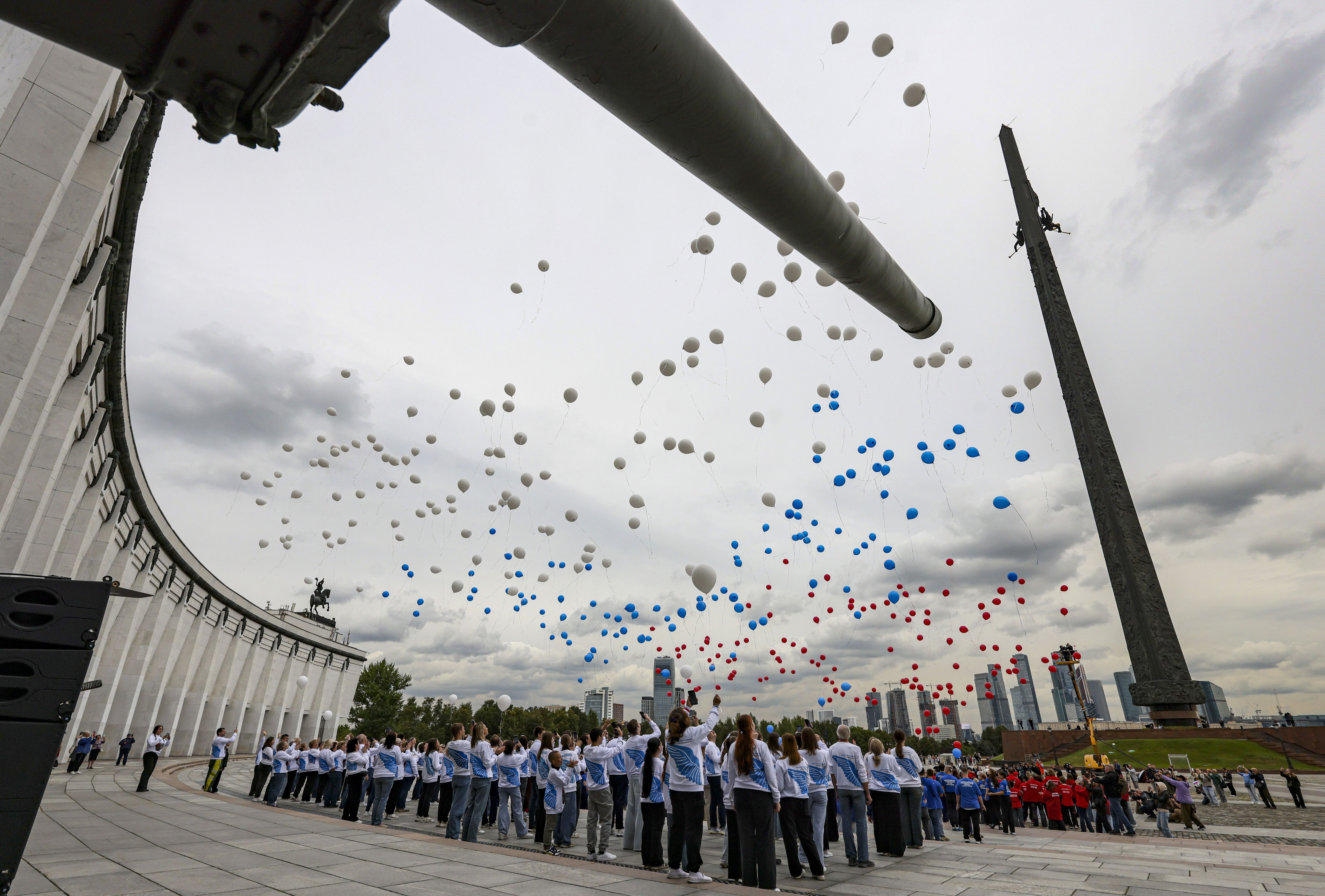 Russian cadets and volunteers release balloons bearing the Russian National flag colors during the celebration of the Russian National Flag Day at the Poklonnaya Hill, in Moscow, Russia, 22 August 2025. The day is celebrated since 22 August 1991, when members of the Supreme Council of the RSFSR (Russian Soviet Federative Socialist Republic) replaced the Soviet Union Flag with a historical flag of Russia following the failure of a coup. (Photo by Sergei Ilnitsky/EPA)