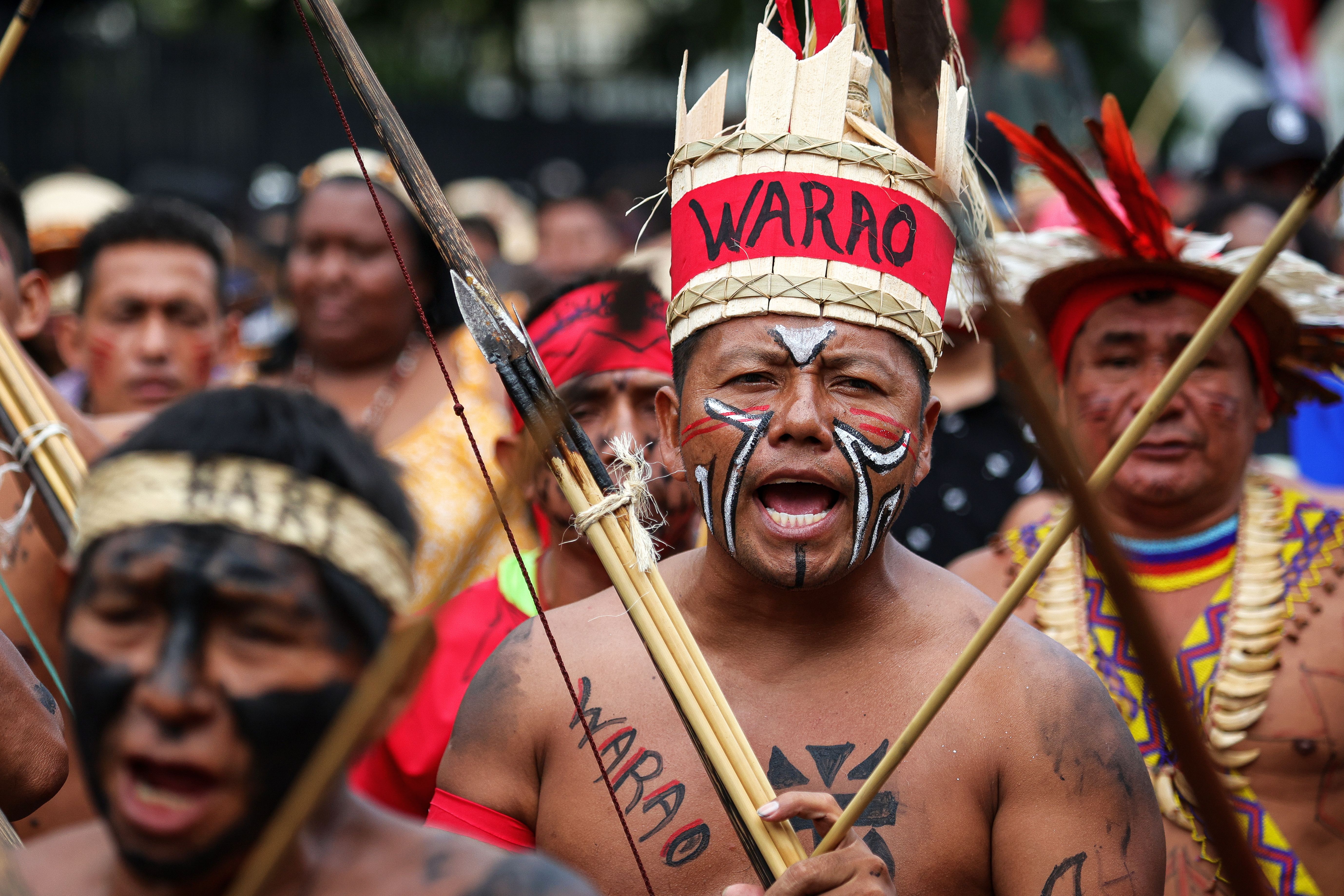 People from various ethnic groups participate in a rally to commemorate Indigenous Resistance Day on October 12, 2025 in Caracas, Venezuela. (Photo by Jesus Vargas/Getty Images)