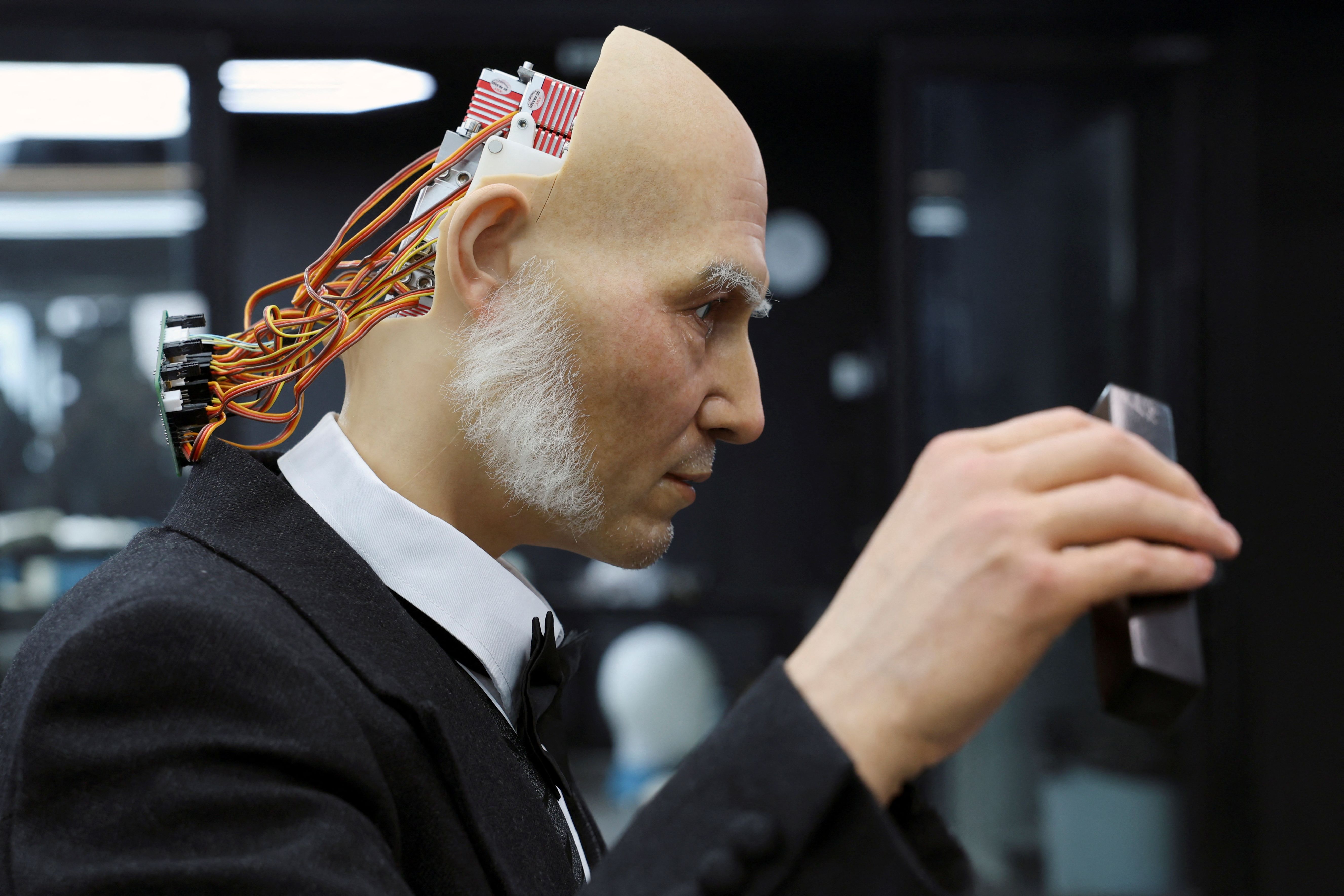 A humanoid robot stands at the office of developer Ex-Robots in Dalian, Liaoning province, China on June 6, 2024. (Photo by Florence Lo/Reuters)