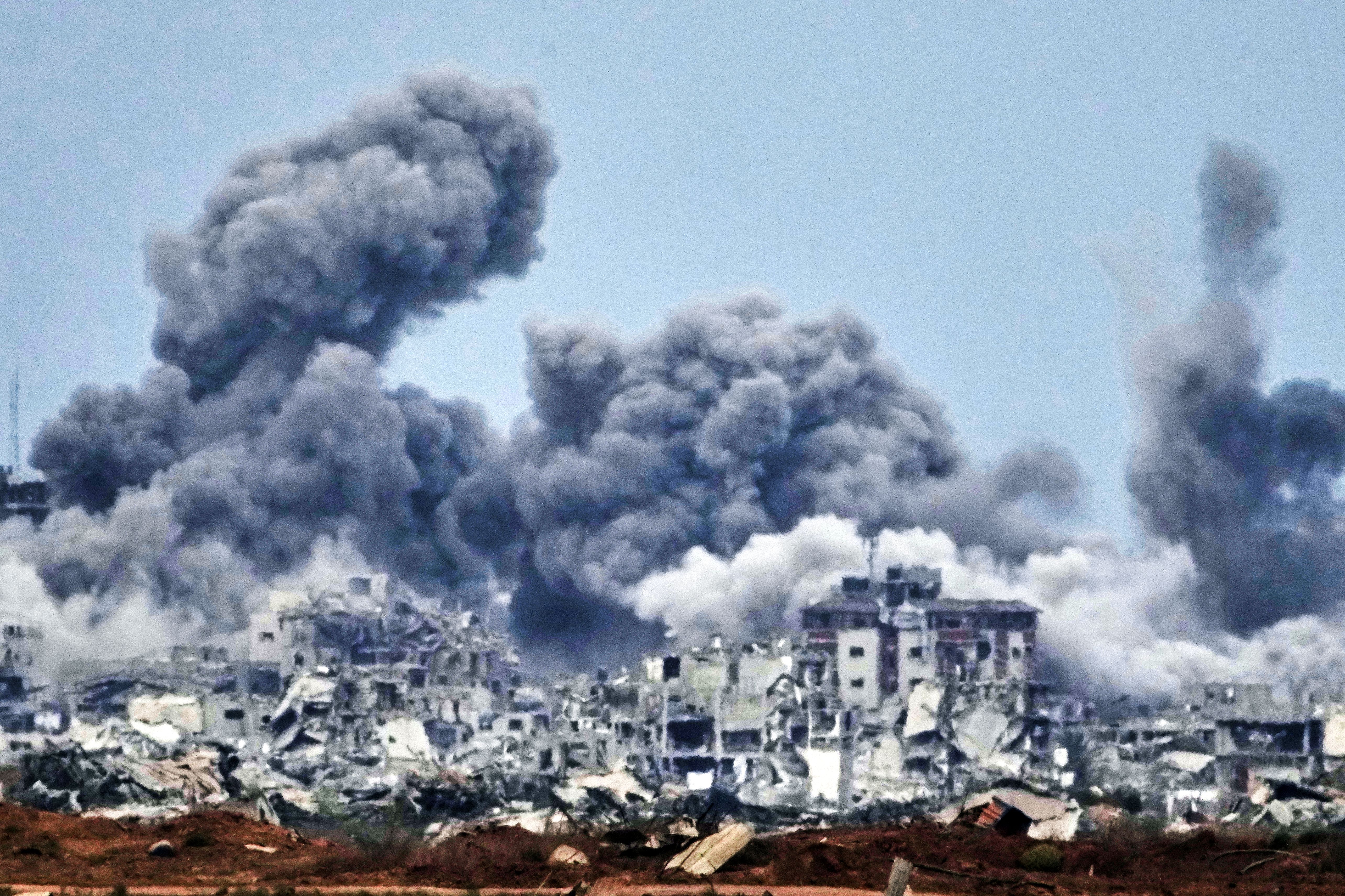 Smoke rises to the sky following an Israeli military strike in the Gaza Strip, as seen from southern Israel, Thursday, October 9, 2025, following the announcement that Israel and Hamas have agreed to the first phase of a peace plan to pause the fighting. (Photo by Ariel Schalit/AP Photo)