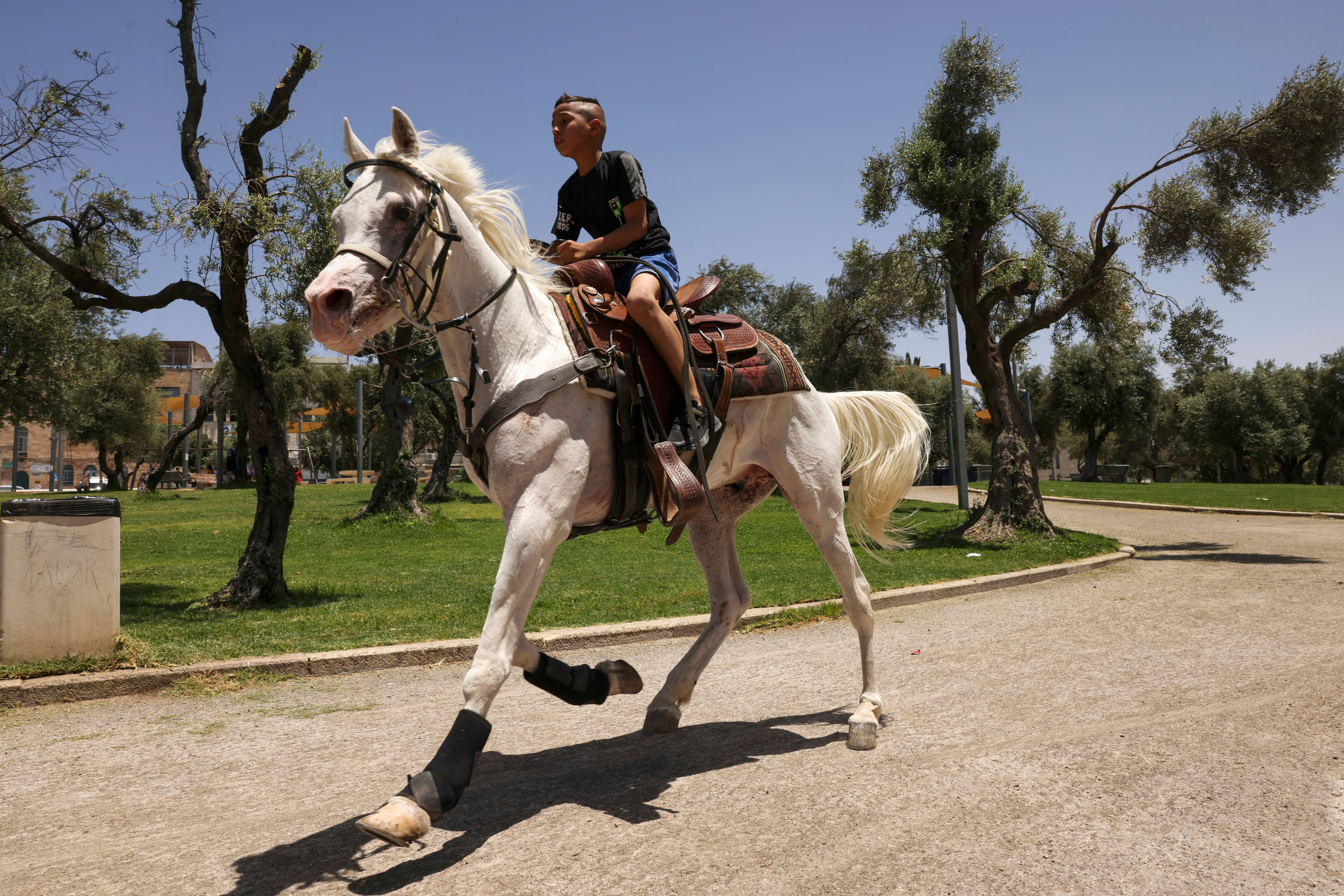 Palestinian youths take horse rides at a park in east Jerusalem as they celebrate the second day of the Muslim holiday of Eid al-Adha or the Feast of Sacrifice, on June 17, 2024. (Photo by Hazem Bader/AFP Photo)