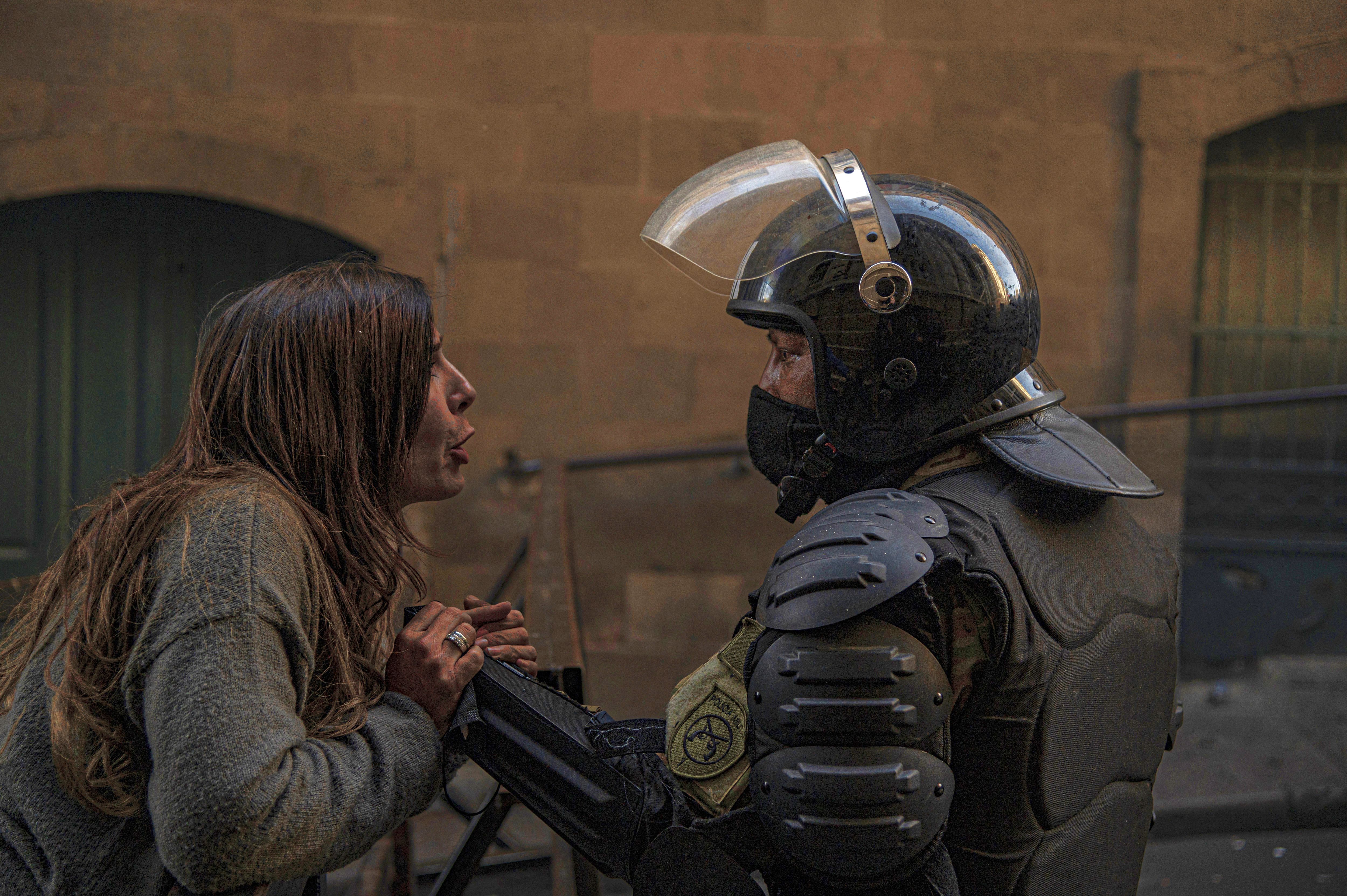 A demonstrator protests near Plaza Murillo and Palacio Quemado in La Paz, Bolivia, on Wednesday, June 26, 2024. Bolivia President Luis Arce late Wednesday swore in a new army commander general after troops led by his predecessor stormed the presidential palace Wednesday in an attempted coup. (Photo by Marcelo Perez del Carpio/Bloomberg via Getty Images)