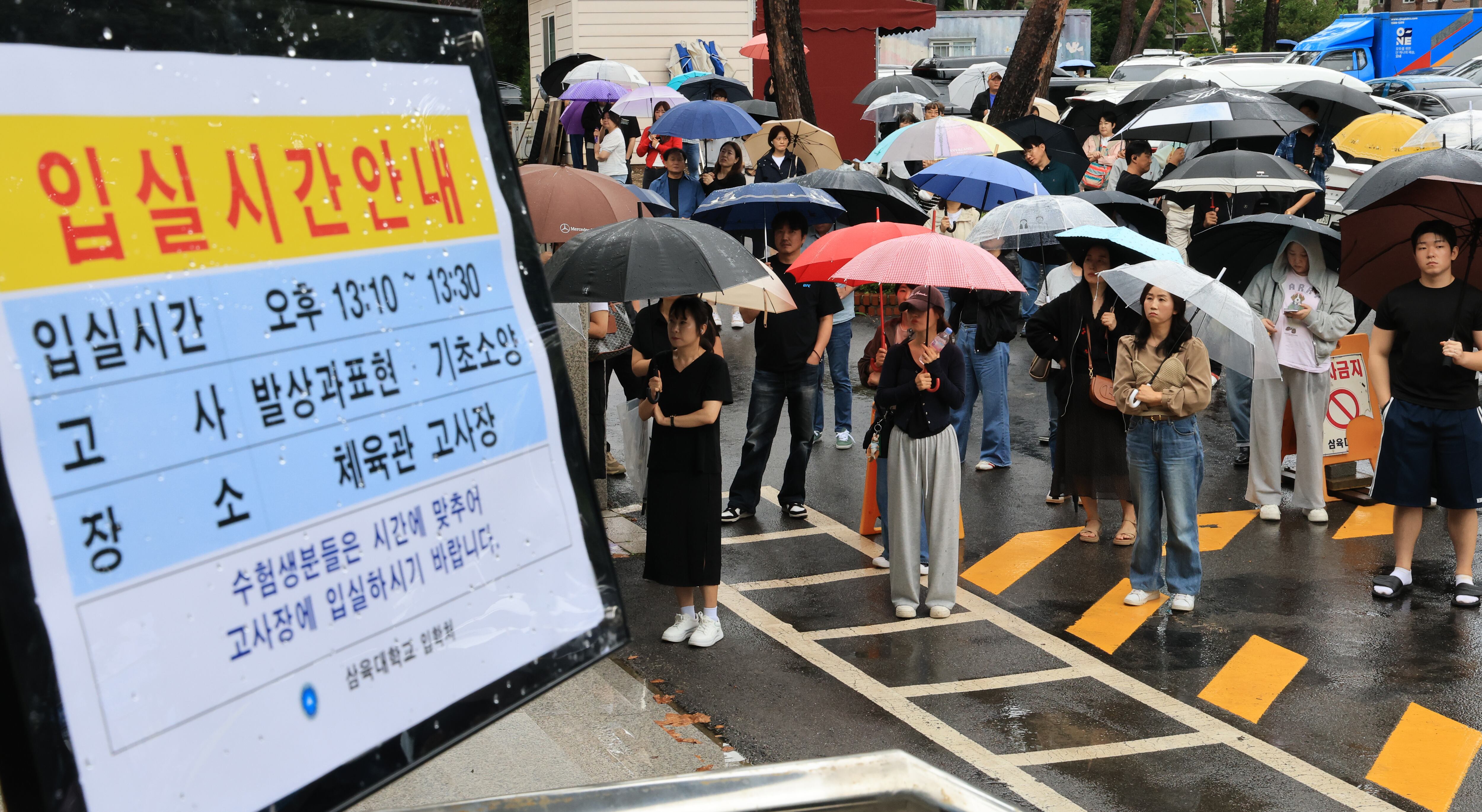 Parents wait for their children as students who applied for the 2026 Art and Design Department regular admissions take the art practical exam at the Samyuk University gymnasium in Nowon-gu, Seoul on September 28, 2025. (Photo by Park Seong-won)