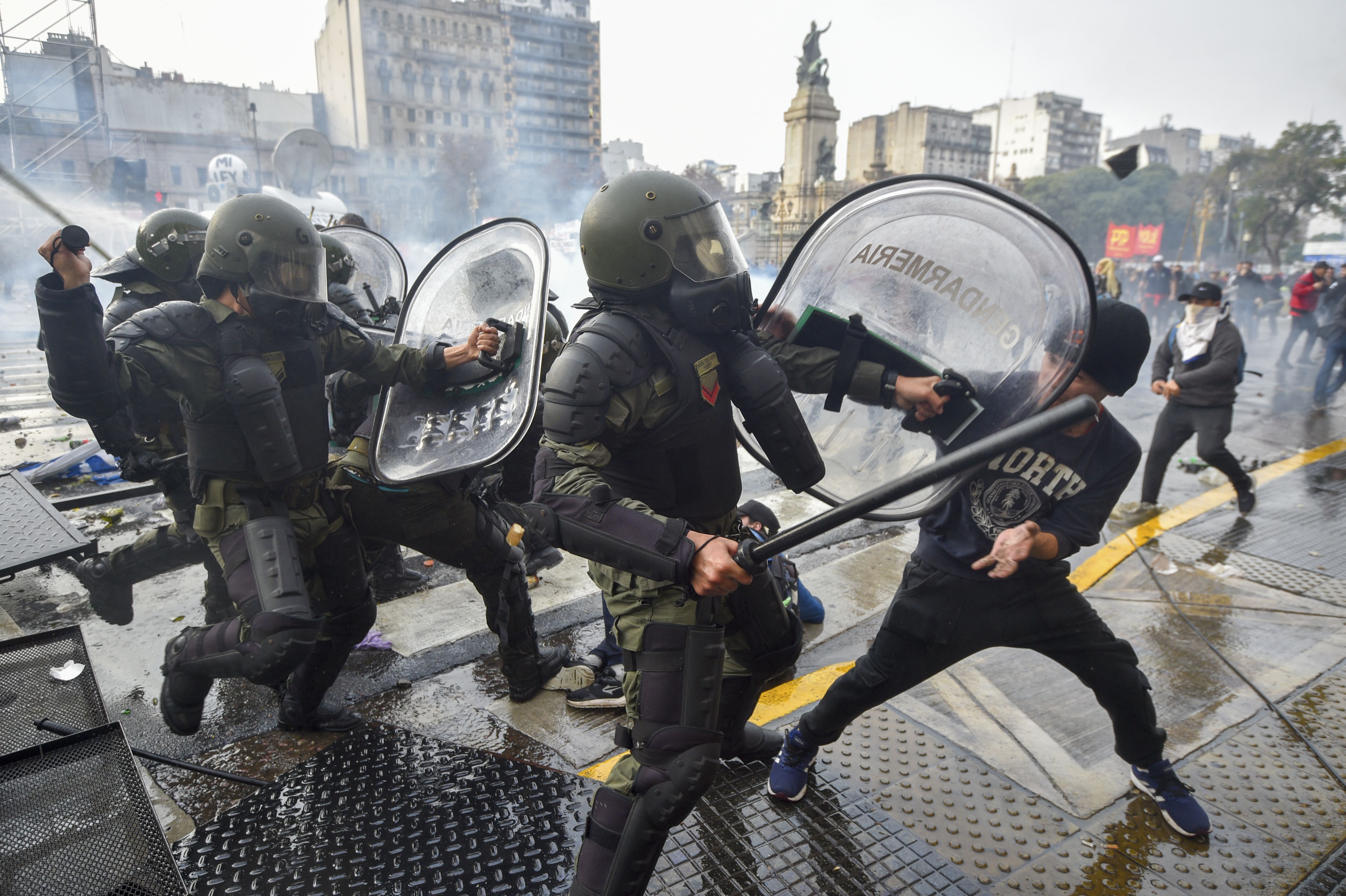 Anti-government protesters clash with police outside Congress, as lawmakers debate a reform bill promoted by Argentine President Javier Milei in Buenos Aires, Argentina, Wednesday, June 12, 2024. (Photo by Gustavo Garello/AP Photo)