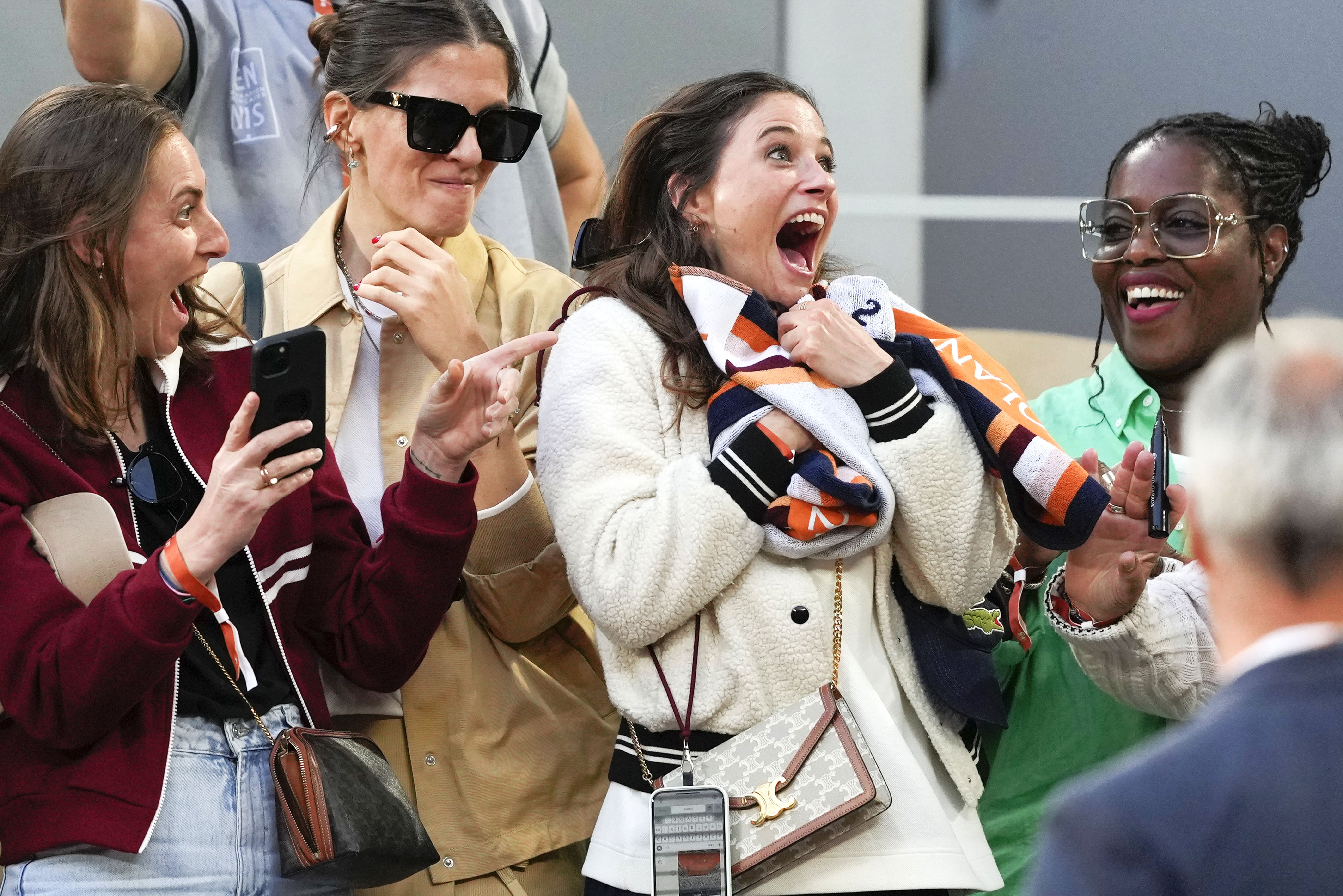 A happy tennis fan caught Serbia's Novak Djokovic's towel after his fourth round match of the French Open tennis tournament against Argentina's Francisco Cerundolo at the Roland Garros stadium in Paris, Monday, June 3, 2024. (Photo by Thibault Camus/AP Photo)