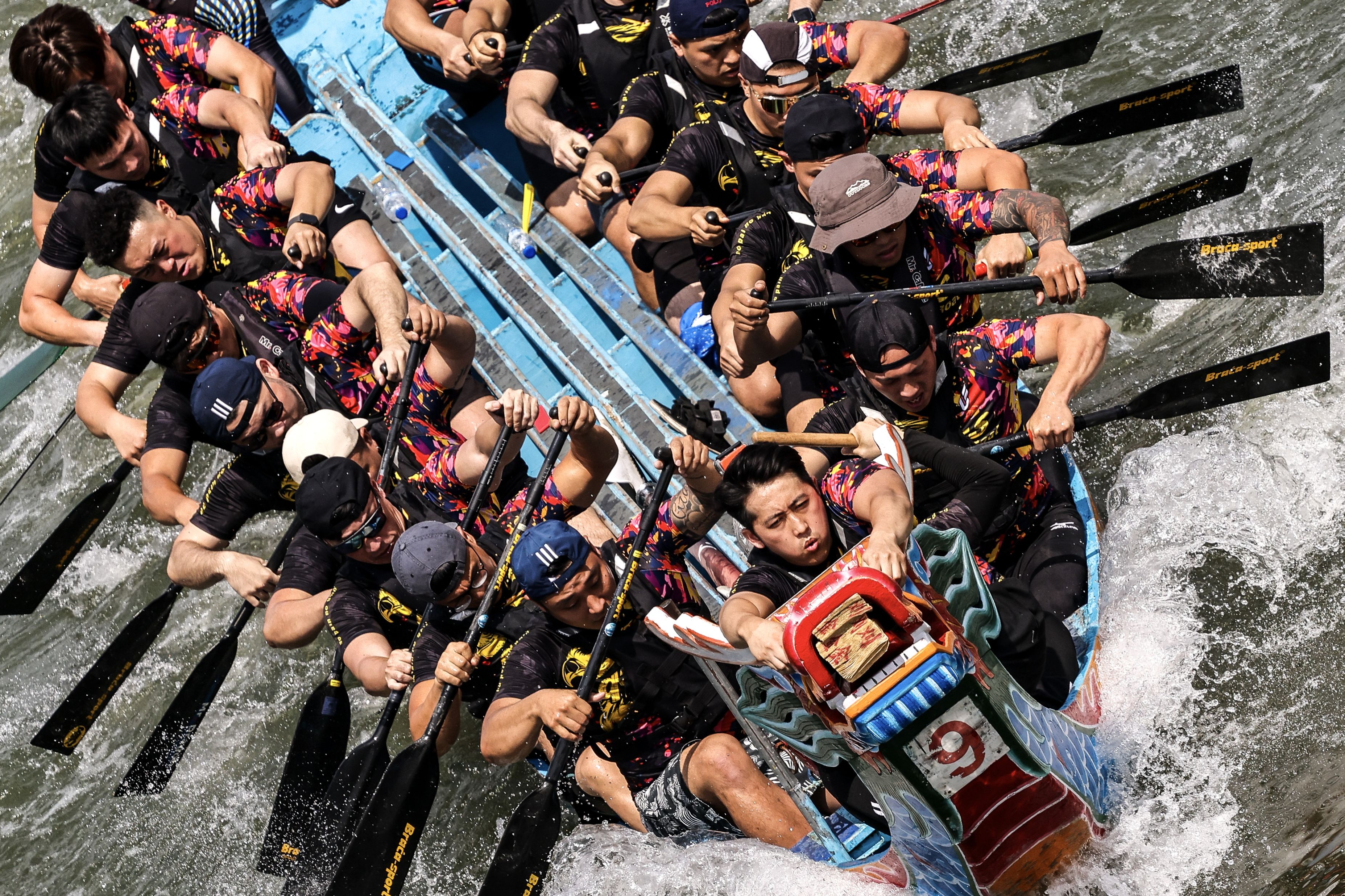 Revelers paddle as they participate in a dragon boat race to celebrate the Dragon Boat Festival in Taipei, Taiwan, 08 June 2024. The Dragon Boat Festival, also known as the Duanwu Festival, falls on the fifth day of the fifth month in the Chinese lunar calendar in honor of Qu Yuan, an ancient Chinese poet and statesman. (Photo by Ritchie B. Tongo/EPA)