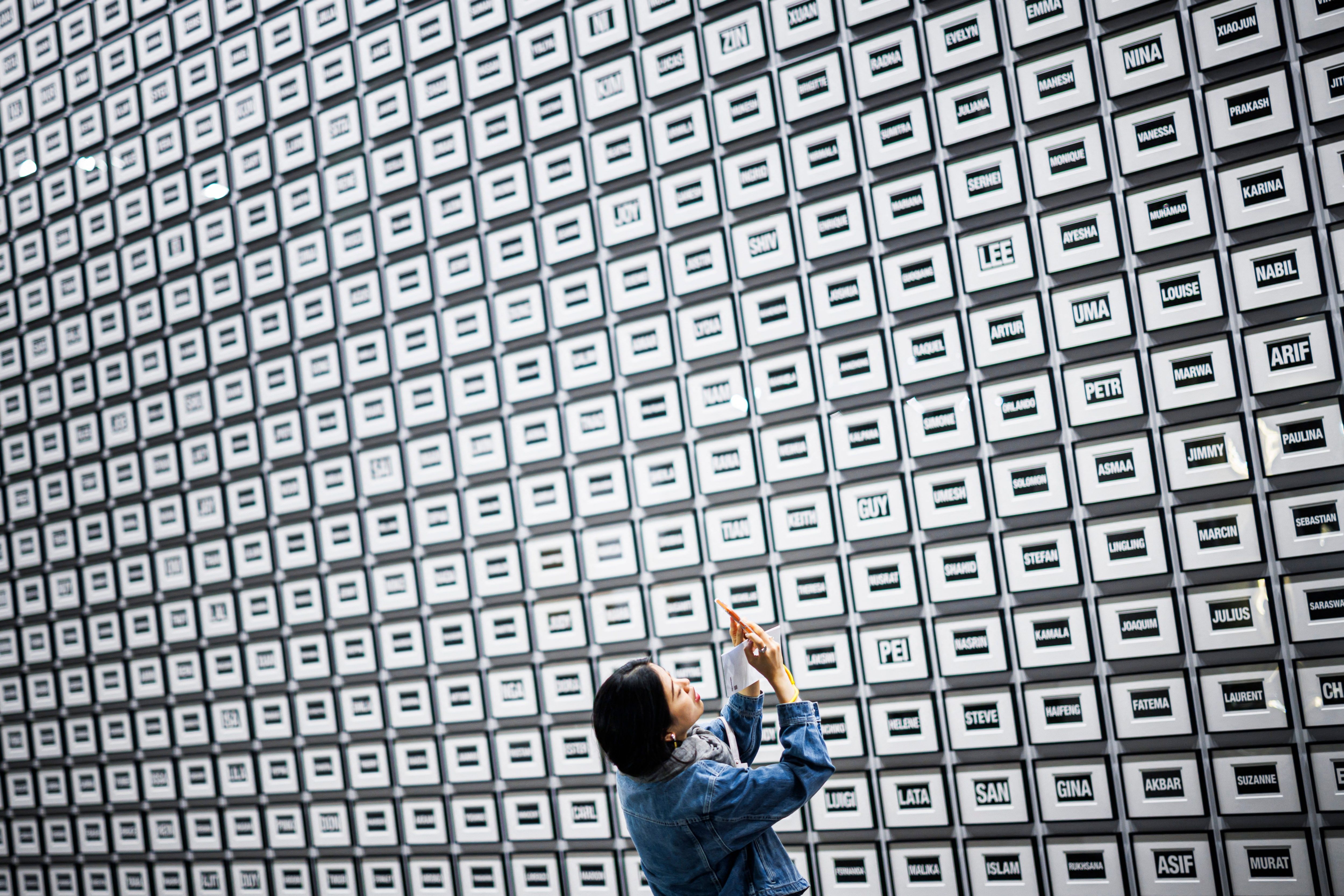 A visitor takes a picture of artwork “The World: A Moment in Time” 2024, by American artist Allan McCollum displayed at the Unlimited sector of Art Basel fair for Modern and contemporary art, in Basel, northern Switzerland, on June 11, 2024. (Photo by Valentin Flauraud/AFP Photo)