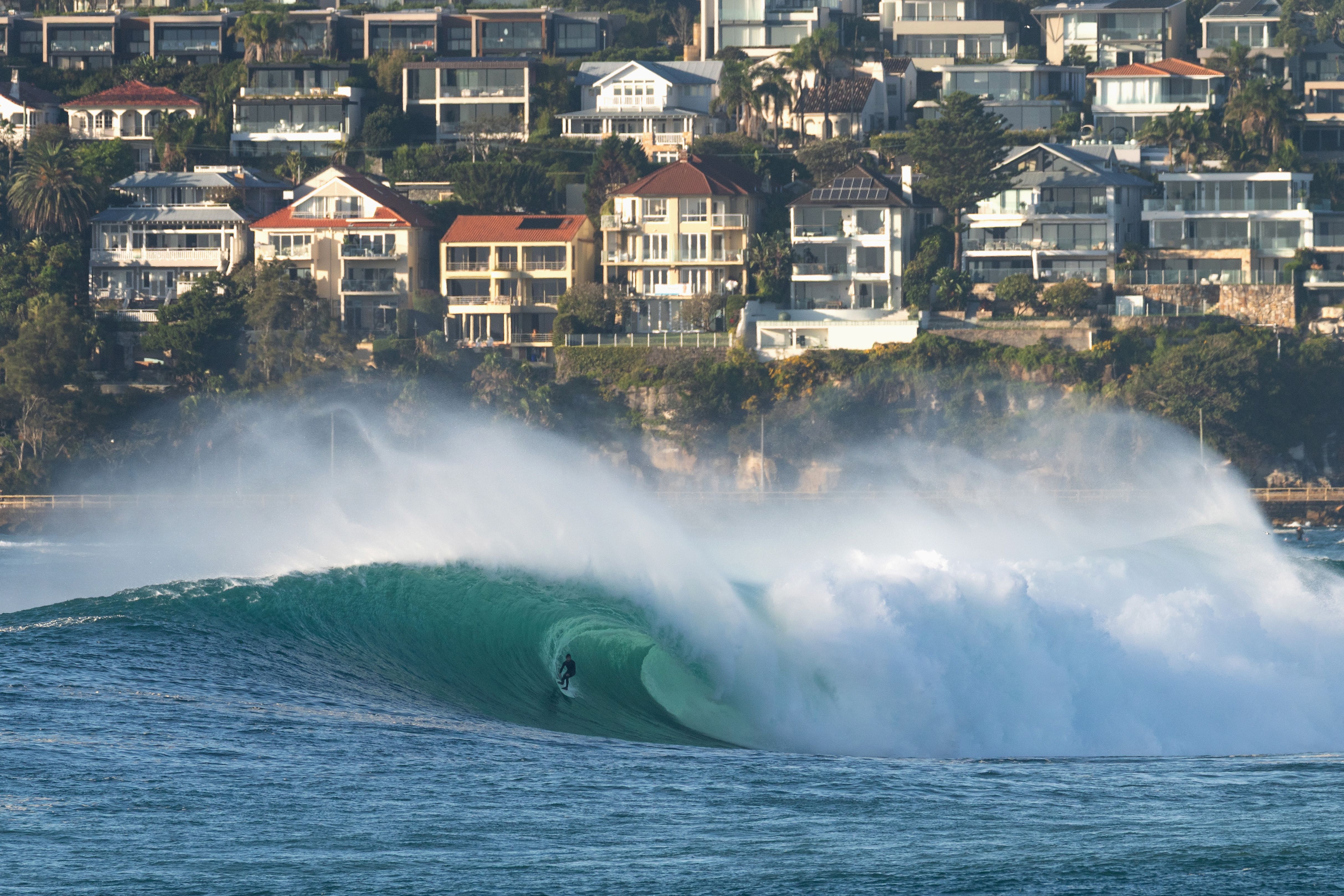 A surfer rides a wave at Queenscliff Bombora off Manly Beach on April 18, 2025 in Sydney, Australia. The large swell has been generated by a strong low pressure system moving down the East Coast of Australia. (Photo by Cameron Spencer/Getty Images)