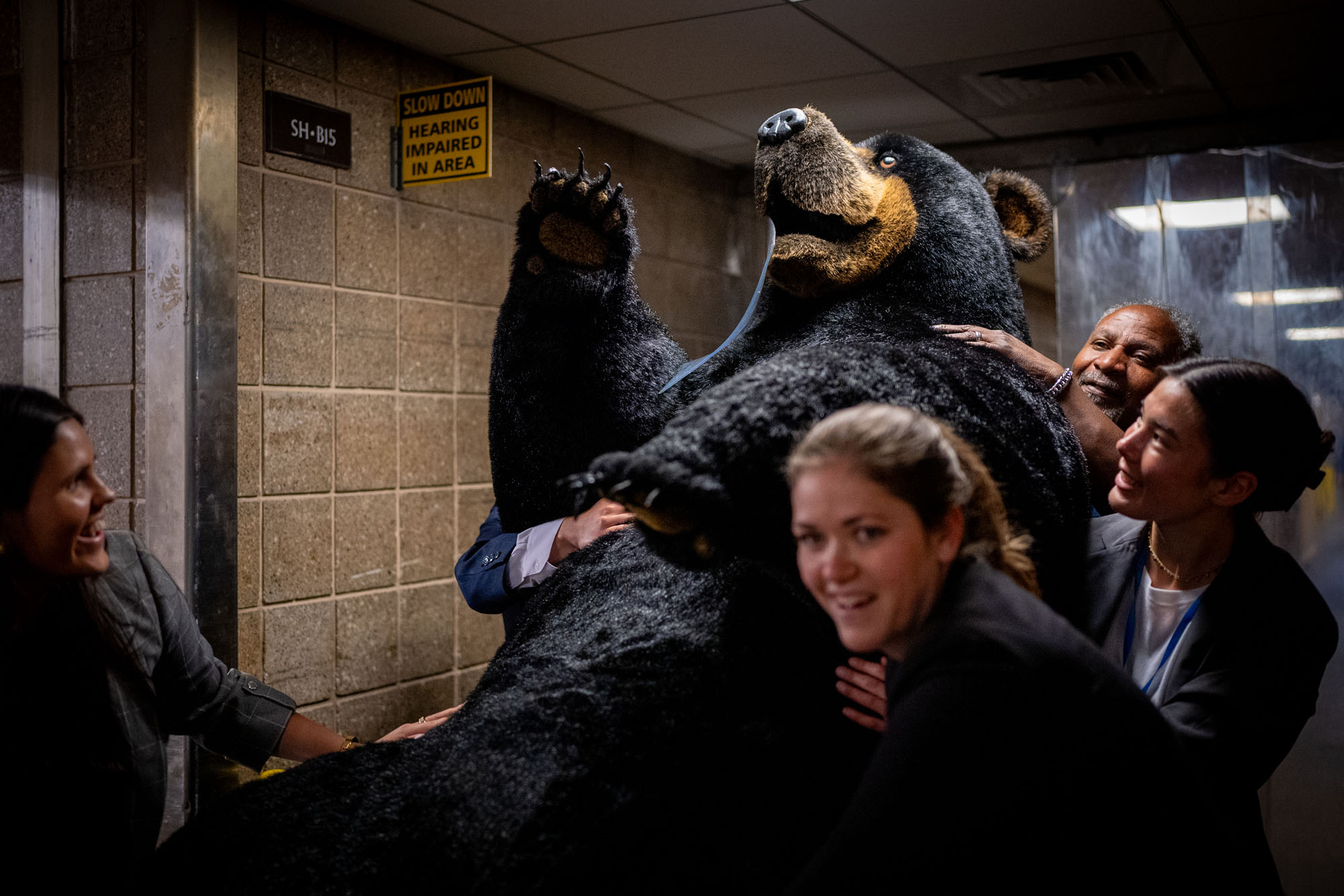 Staff members with U.S. Sen. Jeanne Shaheen's (D-NH) office push a stuffed bear through a loading dock as it arrives on Capitol Hill on June 11, 2024 in Washington, DC. A stuffed moose named “Marty the Moose” and a stuffed bear named “Kodak the Bear” will be on display in Shaheen's office as part of the 13th Annual Experience New Hampshire event. (Photo by Andrew Harnik/Getty Images)