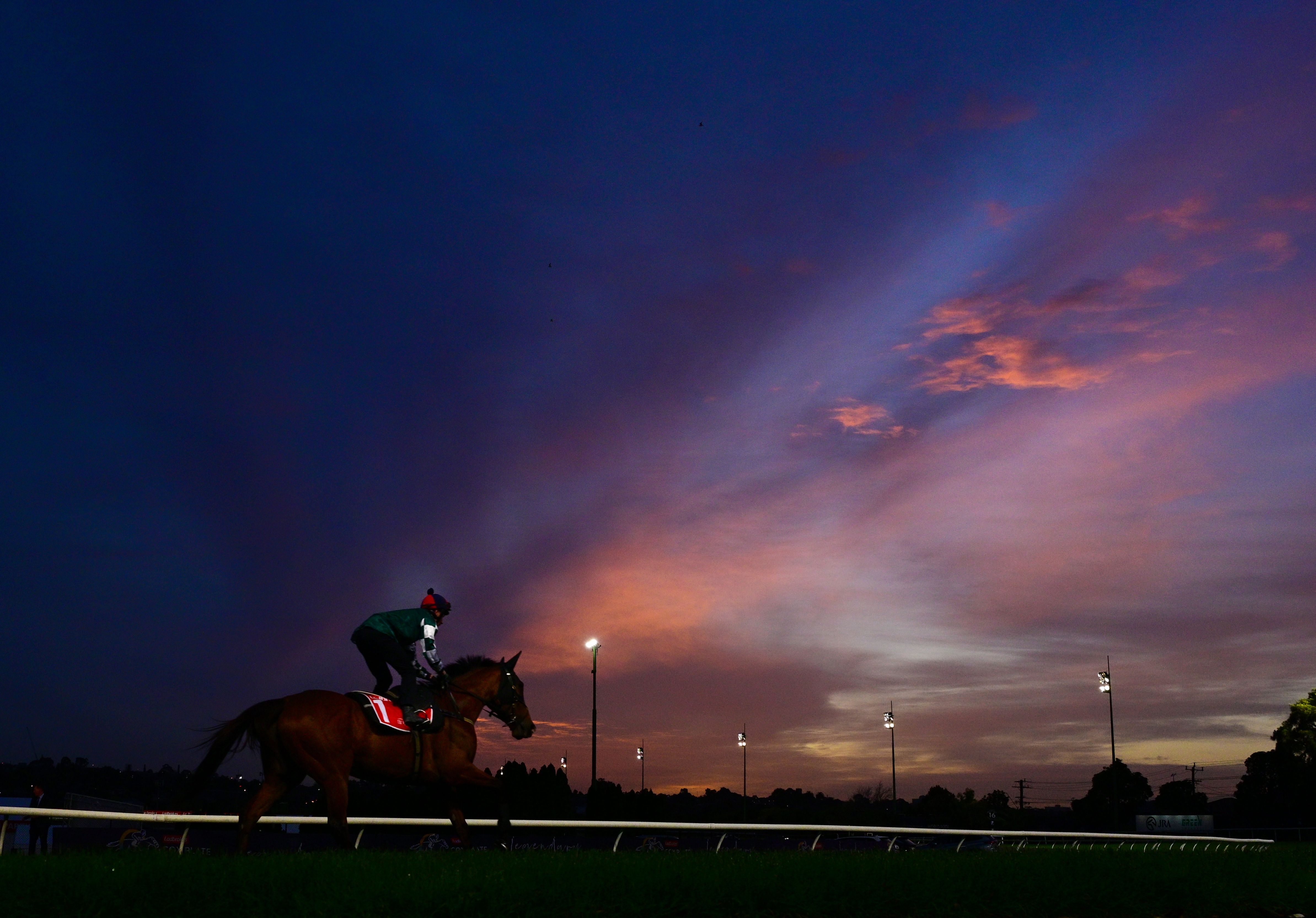 James McDonald riding Via Sistina during Moonee Valley Breakfast With The Best Gallops at Moonee Valley Racecourse on October 21, 2025 in Melbourne, Australia. (Photo by Vince Caligiuri/Getty Images)