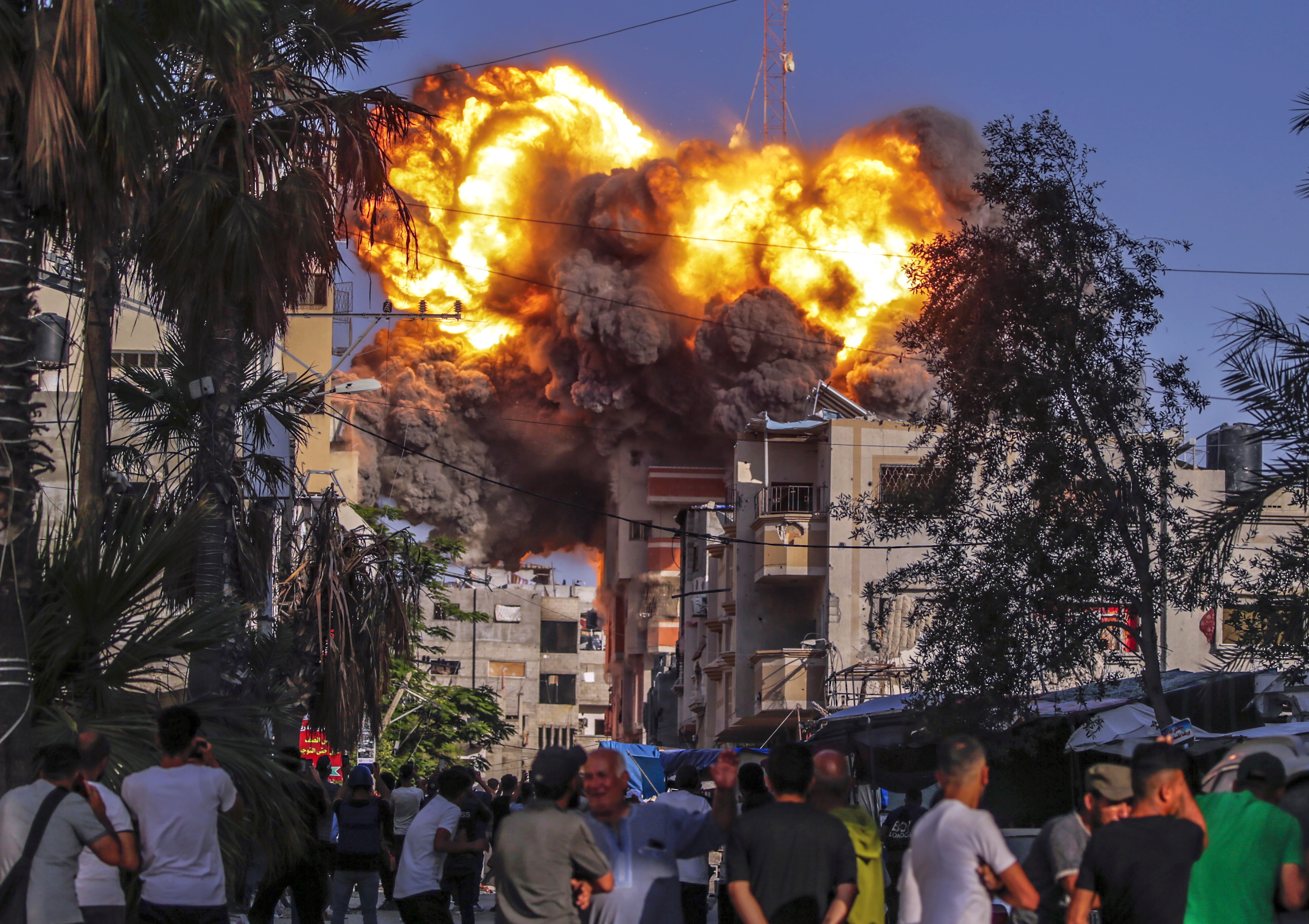 An explosion following an Israeli air strike on Al Bureije refugee camp in the southern Gaza Strip 03 June 2024. More than 36,000 Palestinians and over 1,400 Israelis have been killed, according to the Palestinian Health Ministry and the Israel Defense Forces (IDF), since Hamas militants launched an attack against Israel from the Gaza Strip on 07 October 2023, and the Israeli operations in Gaza and the West Bank which followed it. (Photo by Mohammed Saber/EPA)