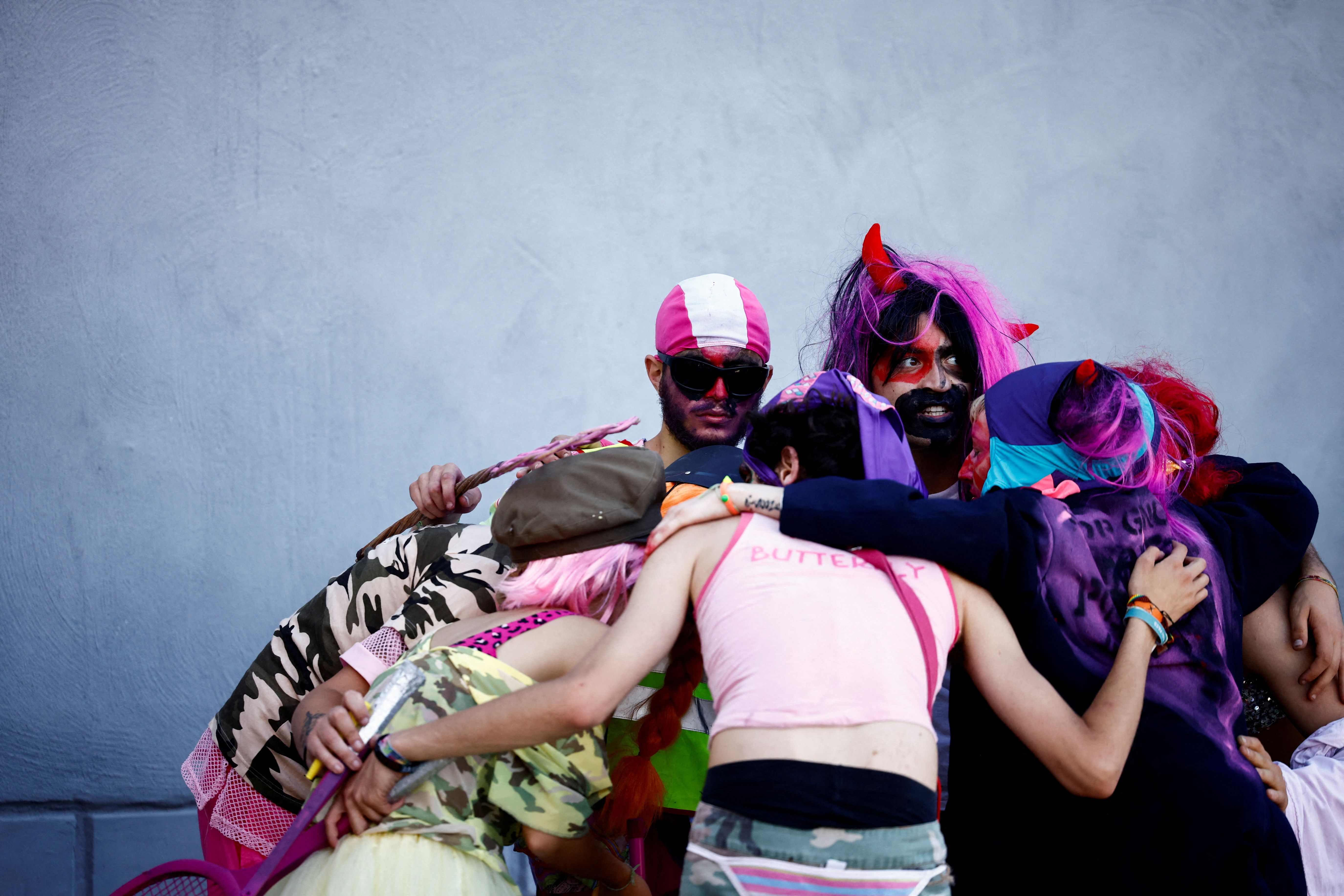 Environmental activists of Extinction Rebellion (XR) demonstrate outside the media centre set up for the G7 summit, in Bari, Italy, on June 14, 2024. (Photo by Yara Nardi/Reuters)