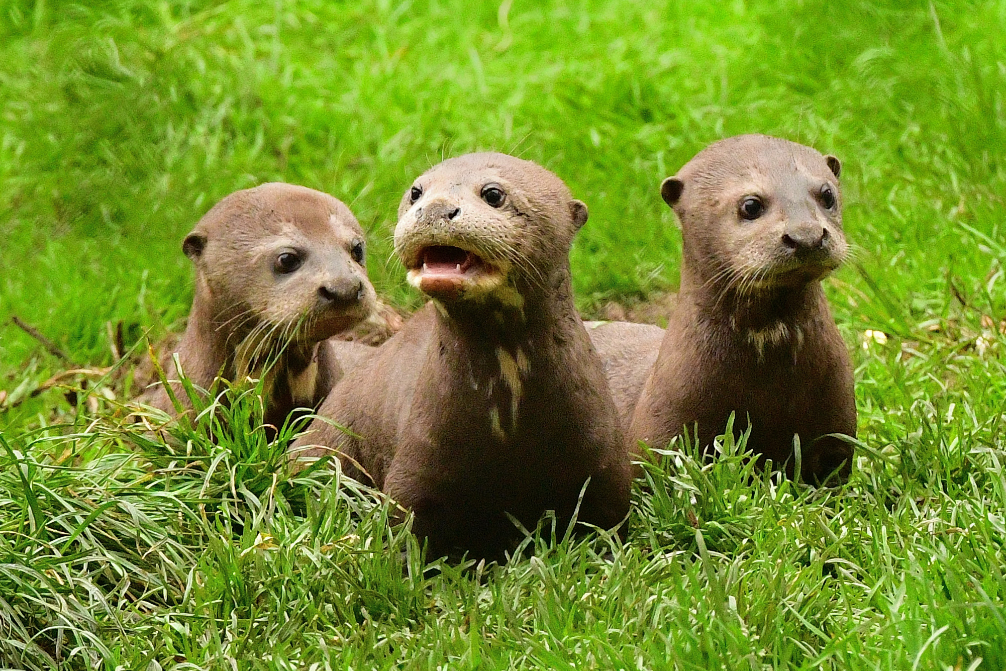 Three baby giant otter cubs are causing a splash at an English wildlife park on October 21, 2025 as they give a much-needed boost to their critically endangered species. The babies born at New Forest Wildlife Park mean it now has the largest captive population of giant otters anywhere in the world. (Photo by HelenPinchin/Bournemouth News)