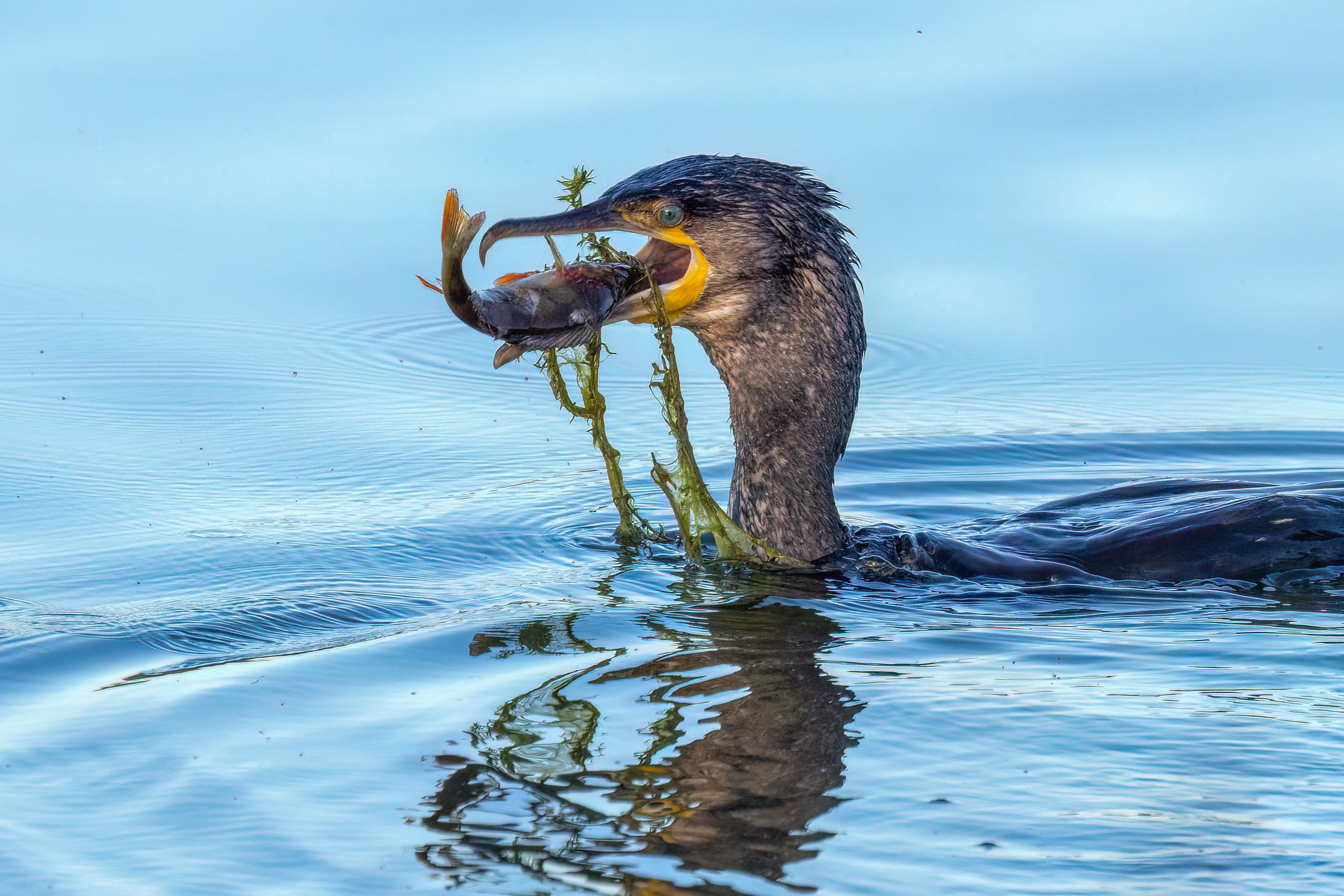A cormorant eating a perch at Tice’s Meadow in Farnham, Surrey, UK on October 22, 2025. The species catches fish with its long, hook-tipped bill while swimming underwater. (Photo by Jon Hawkins/Bav Media)